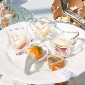 男性ゲストには、しっかりボリューム感のある美味しいお料理を食べていただきたいということ、女性にはデザートビュッフェを楽しんでもらいたいという思いがあり、デザートビュッフェと、プラスでウェルカムパーティーの際にもドリンクに加えて生ハムやカナッペなどを提供して楽しんでもらえるようにしました!