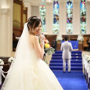 アニヴェルセル ヒルズ横浜のチャペルを彩るステンドグラスとパイプオルガンは、英国リバプールの由緒正しいイマニエル教会で120年以上愛され続けたものだそうで、その歴史のある素敵なチャペルで挙式を行いたいと思い、こちらの会場に決めました♪*