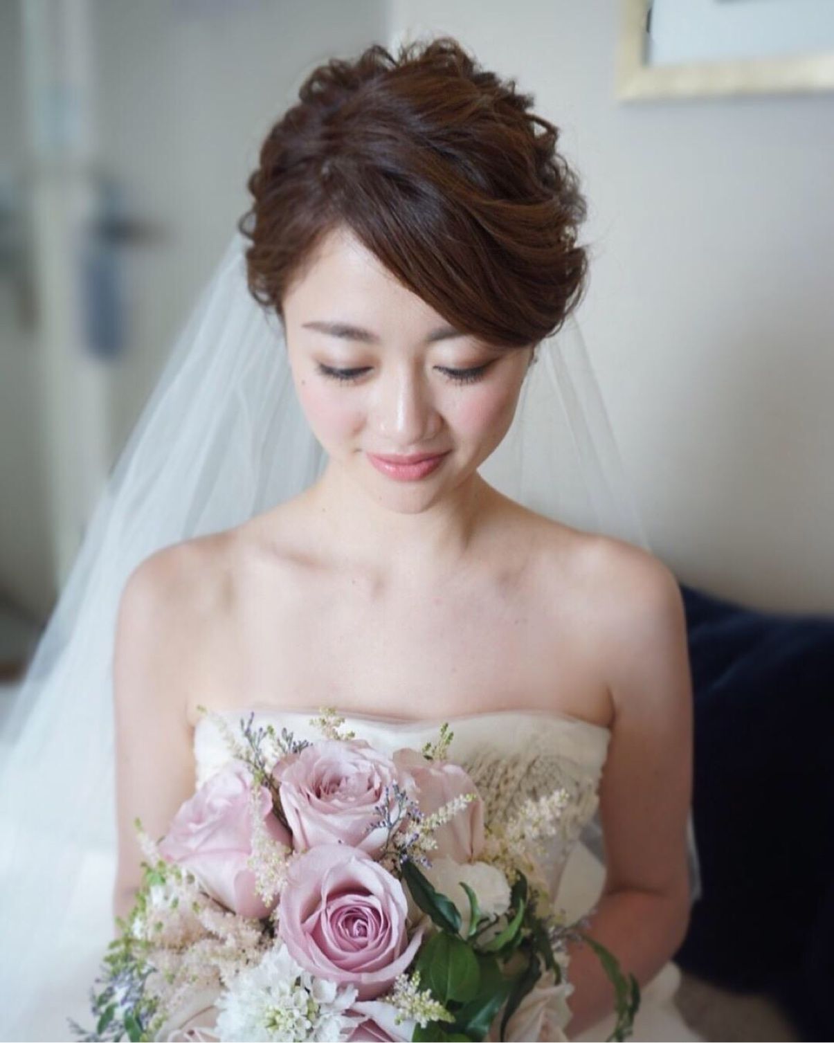 ヘアメイクは有名なみかさん(@mika_arrange)にお願いしました。 挙式、挙式後、お色直しの3パターンでシニヨン、ハーフアップ、アップと雰囲気を変えました。 メイクはほぼみかさんにお任せです!