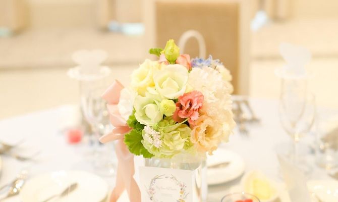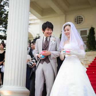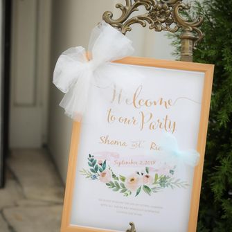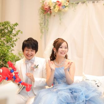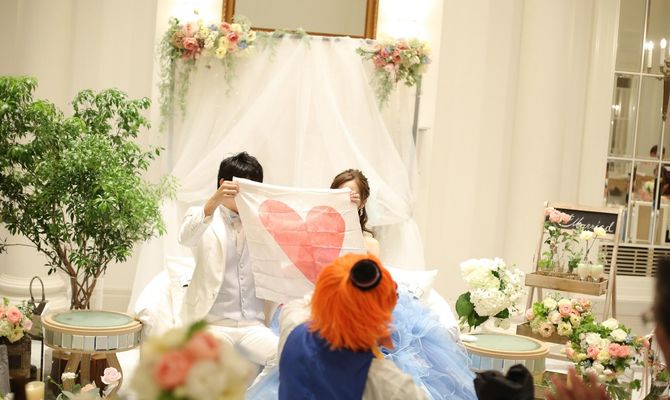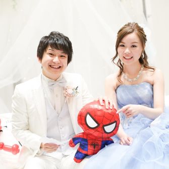 テーマは『大人から子供まで楽しめるアットホームな結婚式』です。二人の思い出のUSJの要素も取り入れました。ただ楽しいだけではなく、家族や友人に感謝の気持ちを伝える、笑いあり涙ありの結婚式にしました。