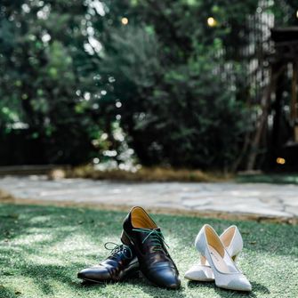 コンセプトである色のグリーンは、お互いのドレスやタキシード、招待状やエスコートカードなどのペーパーアイテムなど、色々なところに取り入れています。