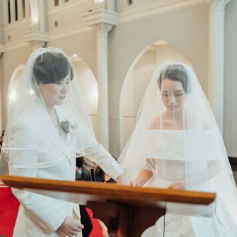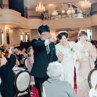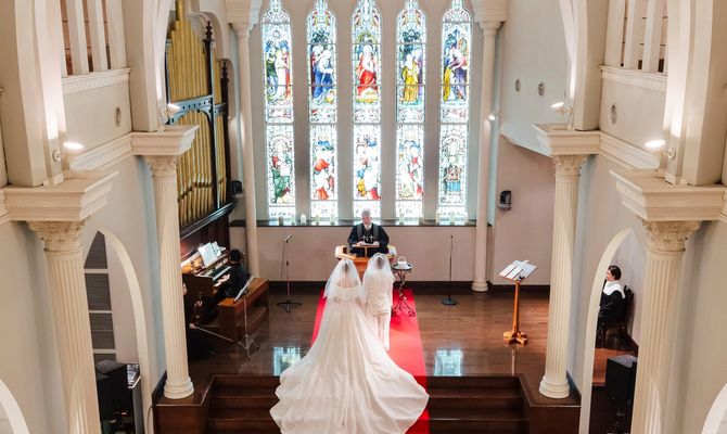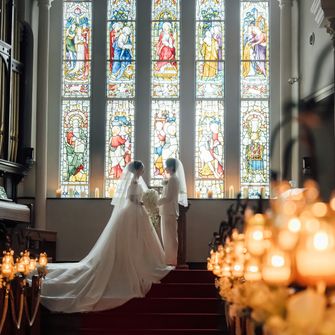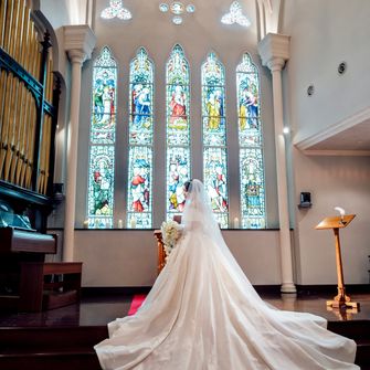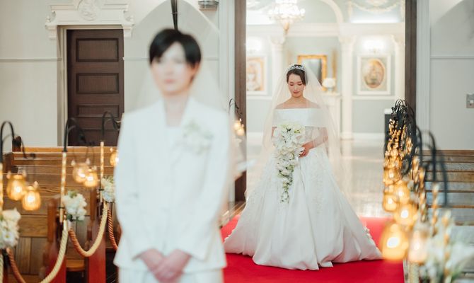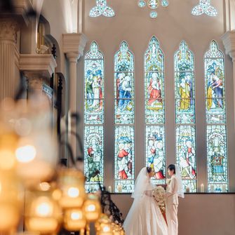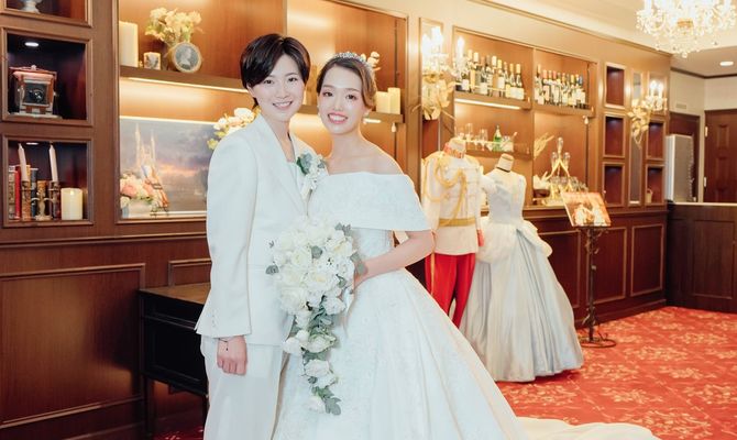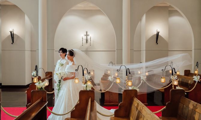 結婚式のテーマは『大人ディズニー』にしました。キャラクターを全面に出してしまうと子供っぽさが出てしまうことがあるので、プリンセスを中心にシルエットやロゴ、小物などをディズニー風にしています。コンセプトとしては『今まで支えてくれた家族や友人に感謝を伝える式』です♡大阪セントバース教会はイギリスのバースをモチーフとしたクラシカルな式場だったので、自分たちが思い描く大人ディズニーにぴったりだなと思い、選びました。