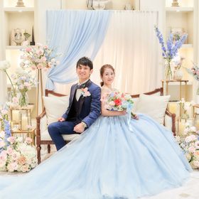 水色のお花があまりないそうでお花での水色の演出は叶わず、代わりにオーガンジーやテーブルランナー、ペーパーアイテムなどで水色を演出しました。