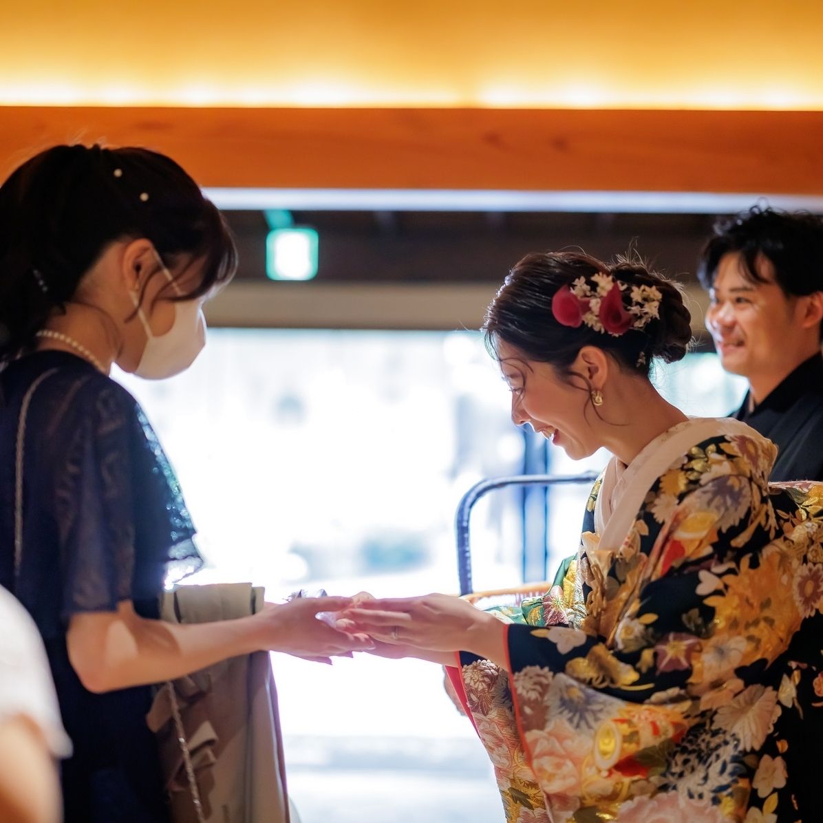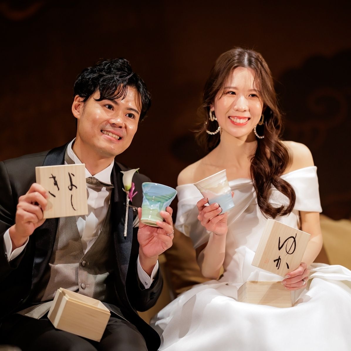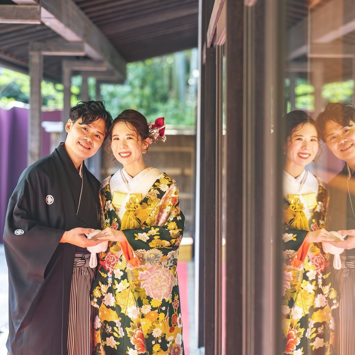 白鳳館という一棟貸切の会場で披露宴を行いました。濡れ縁からかっこよく入場することができることが白鳳館にした決め手です。また、お庭には大きな桜の木があり、当日は桜の木の下でケーキ入刀を行うことができました🌸