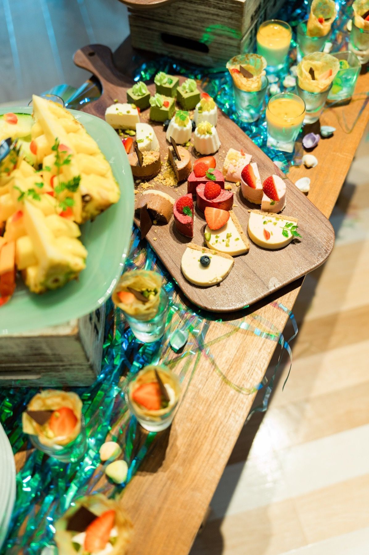 そして新郎が和歌山県出身なので、地元のみかんをお口直しのシャーベットで出していただき、デザートはデザートビュッフェをご提供しました!