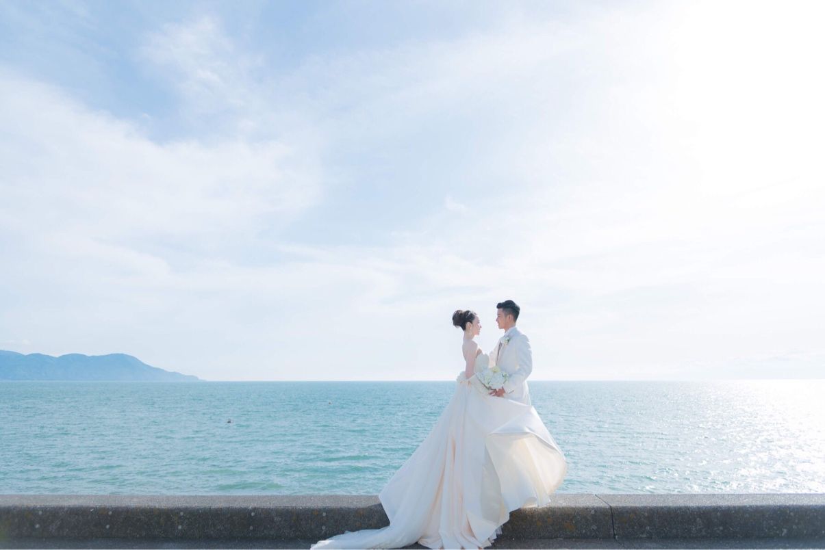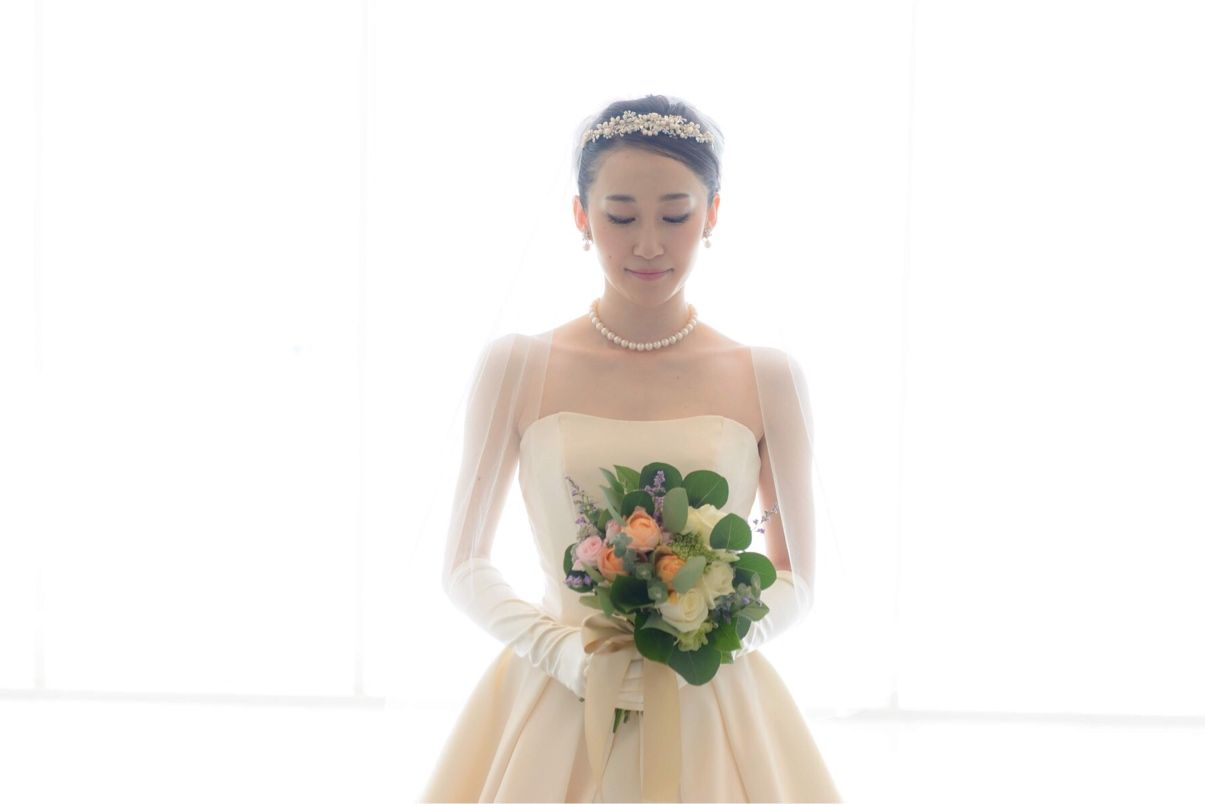 目の前が海の式場なので、シンプルに上品なデザインの中に、シェルや貝殻モチーフのパーツを入れてもらい、海っぽさを出しました。