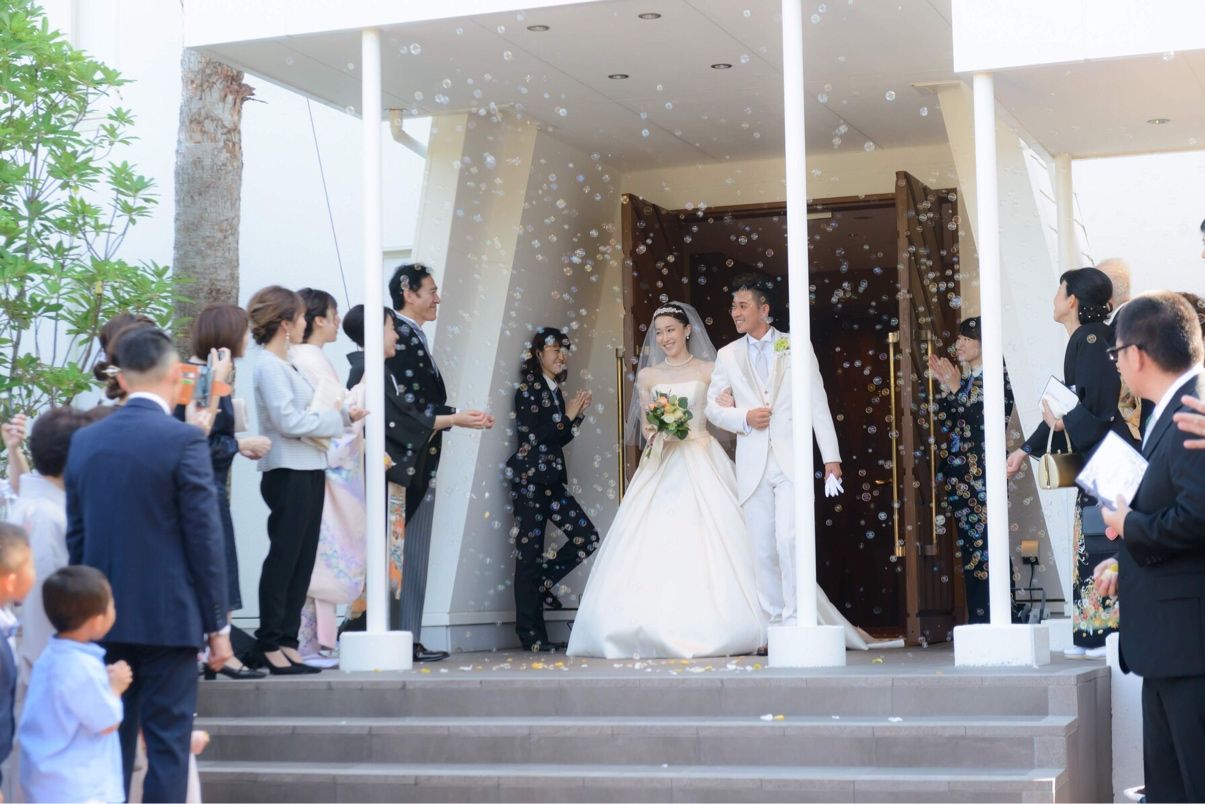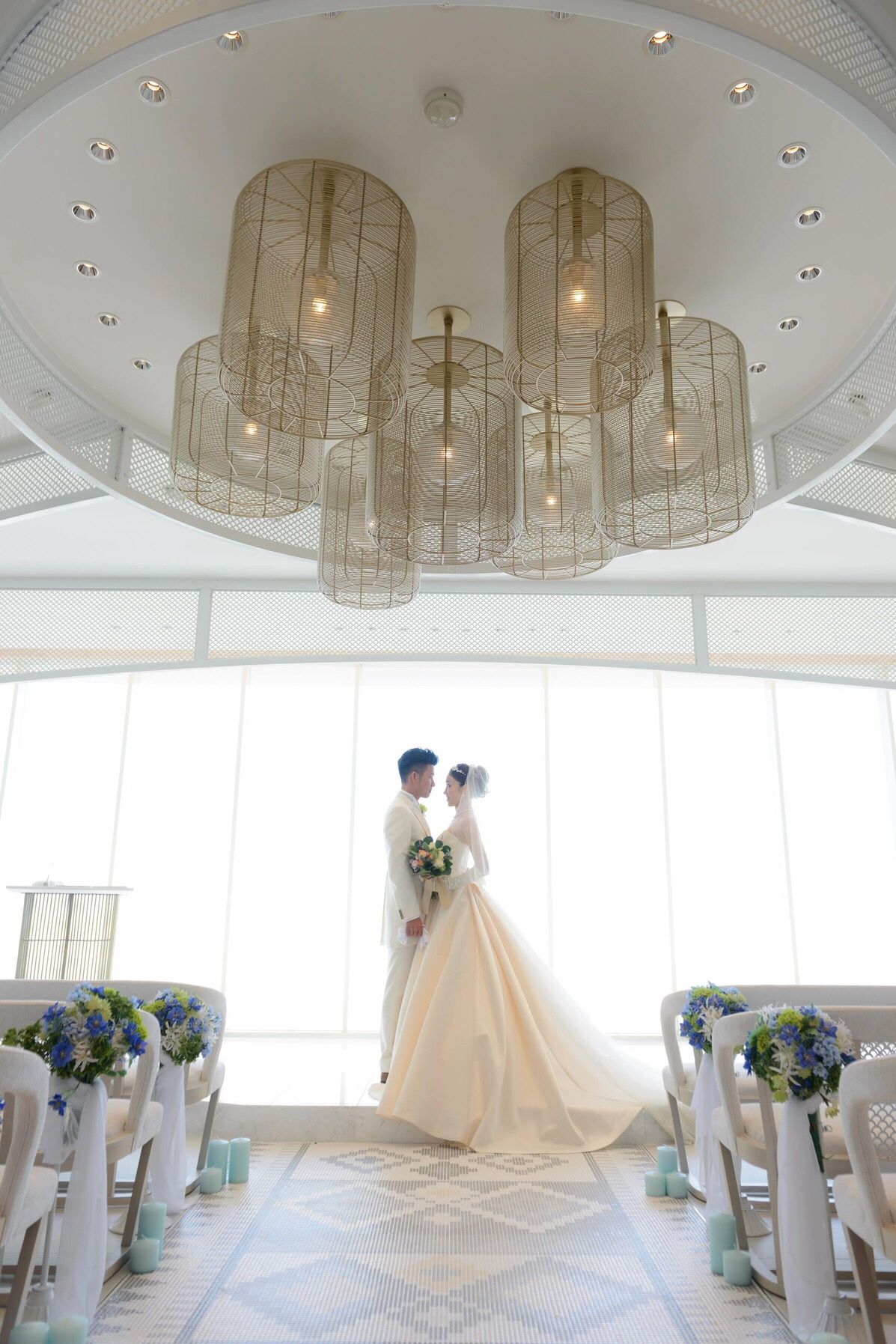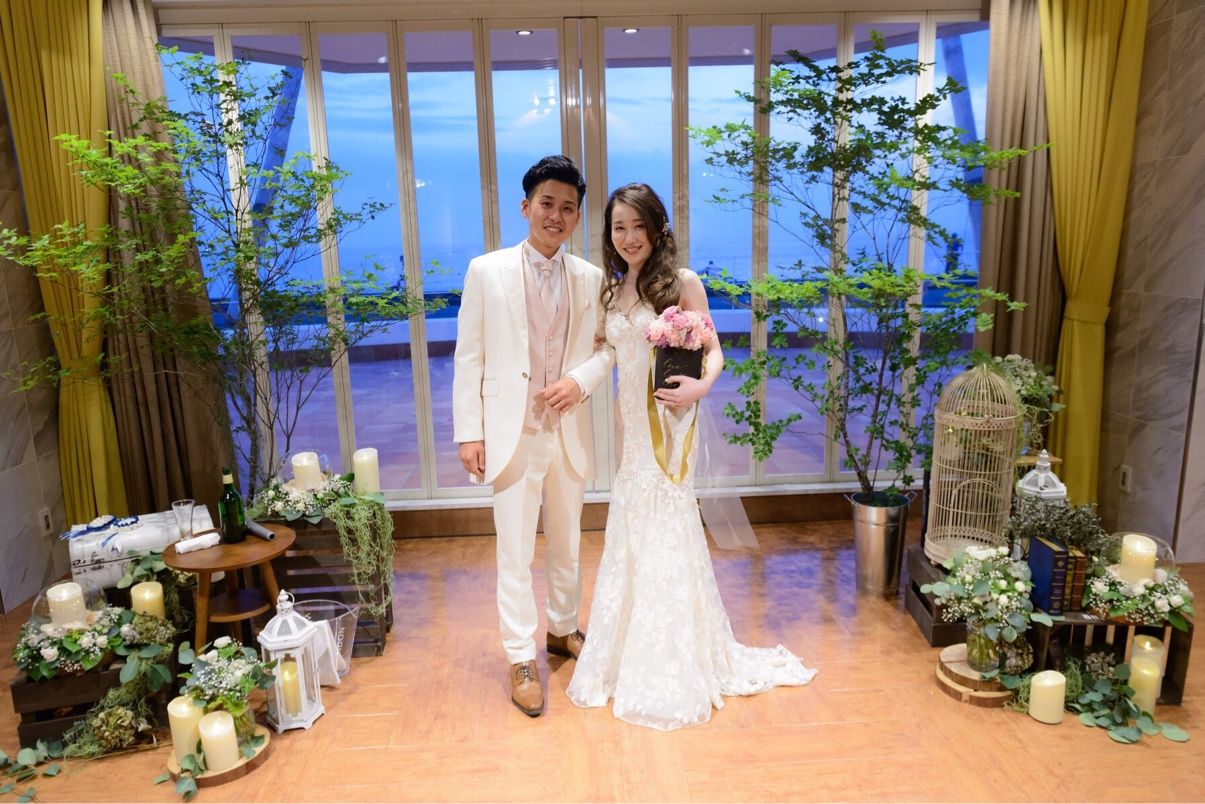 閉まっているカーテンを開けると全面オーシャンビューなので、開いた瞬間のゲストの歓声がすごかったです。バージンロードは短めなので、ゲストとの距離を近くに感じることができます。