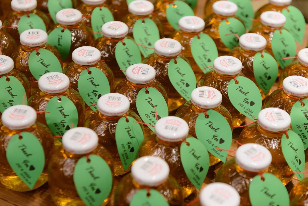 主賓にはカタログギフト/男性上司にはボダムのコップ/女性上司・女性親族にはsabonのシャワージェル/女性同僚・友人にはsabonのボディーソープ/独身男性同僚・友人にはタンブラーとハンカチのセット/既婚者男性同僚・友人にはぼだむのコップ/祖父には蜂の巣/両家母・妹にはdiorのハンドクリーム