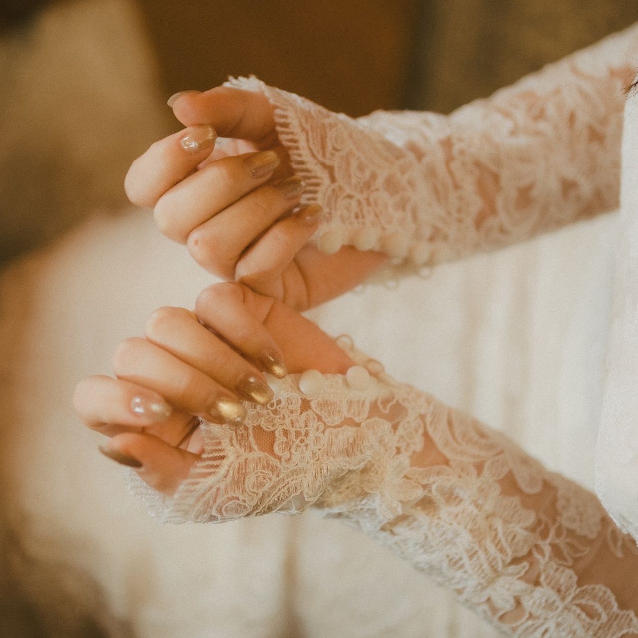 レースがとても綺麗に施されていて、下生地にピンクベージュがあることで肌馴染みがよく、上から重ねられたオフホワイトのレースはとても高級感があります。胸元の透け感や背中が菱形にあいているところなど、全体的に重苦しくない計算された抜け感がとてもお気に入りです。