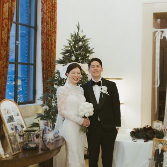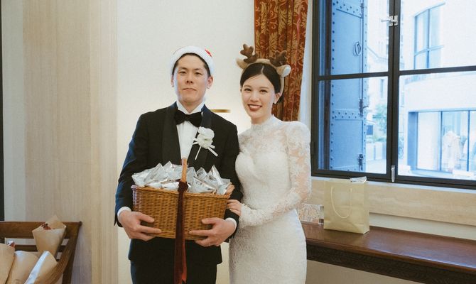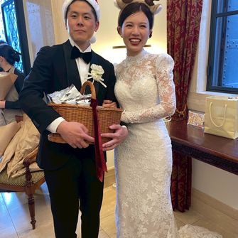 クリスマスリースは、ゲストの方にリボンをつけてもらう参加型の演出として取り入れています。クリスマス支度のようにワクワクしてもらえたらいいなと思い、プランナーさんの名提案を即採用したものです!