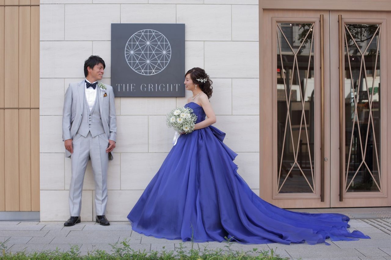また、普段の私服は黒や白のシンプルなもの、持ち物は赤やピンクのものを好んで持っており、会場は向日葵いっぱいの黄色… ゲストの誰もが予想していないだろうネイビーにしたのもポイントです。(笑)ゲストの皆様からも「意外でびっくりした!」と言っていただけました。
