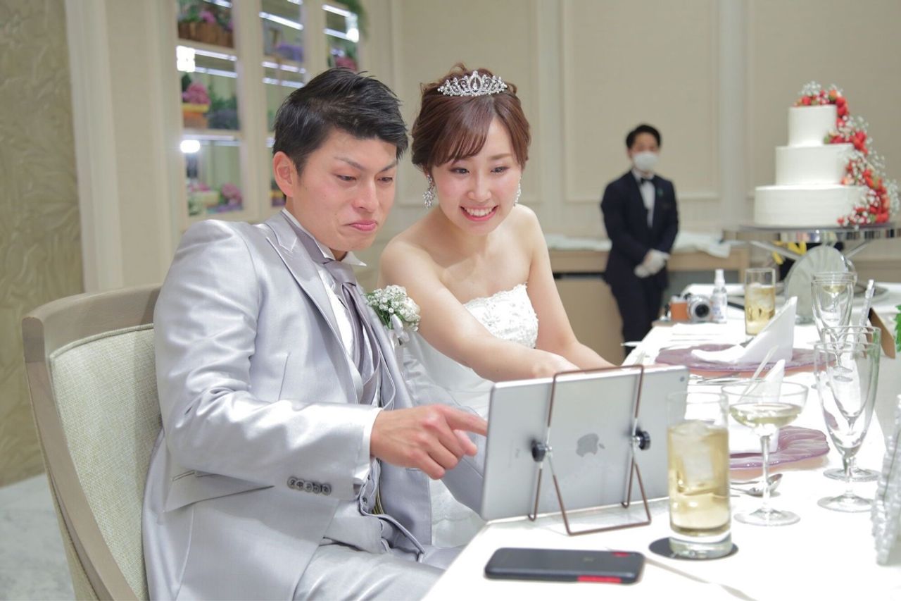 また、四国最大級のビッグスクリーンがあるため、遠くなりがちな親族席の家族もよく見えたと満足してくれました◎また、ケーキ入刀など、前に人が集まりやすい場面でも、大きなスクリーンに映してもらったことで、ゲストの皆様が自席から楽しむことができ、密を避けることもできました!
