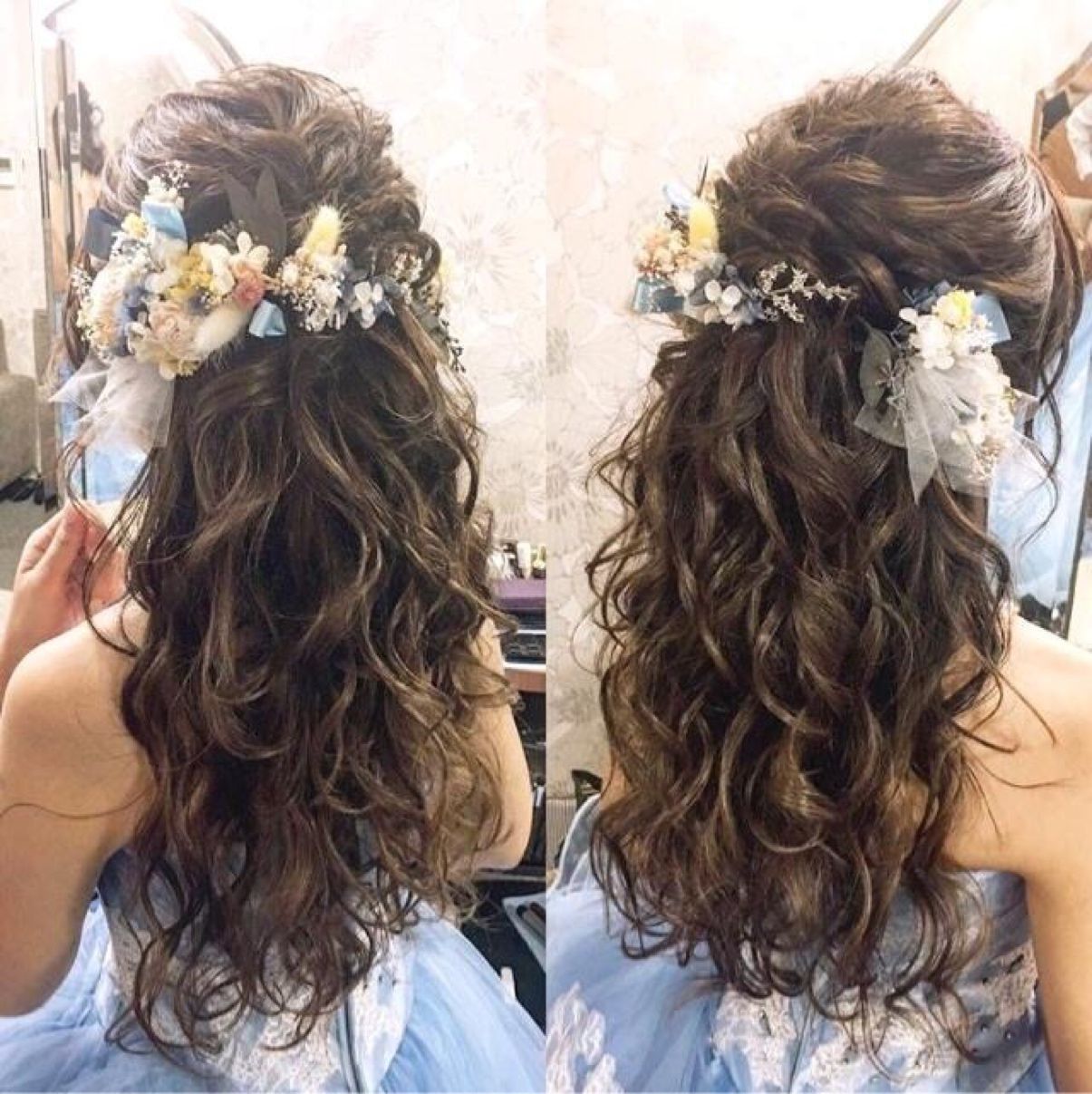 ヘアに付ける物もロザリナに合った、インスタグラムの作家さんに造花とブリザードを混ぜた髪飾りを作って頂き、可愛く付けて頂きました。