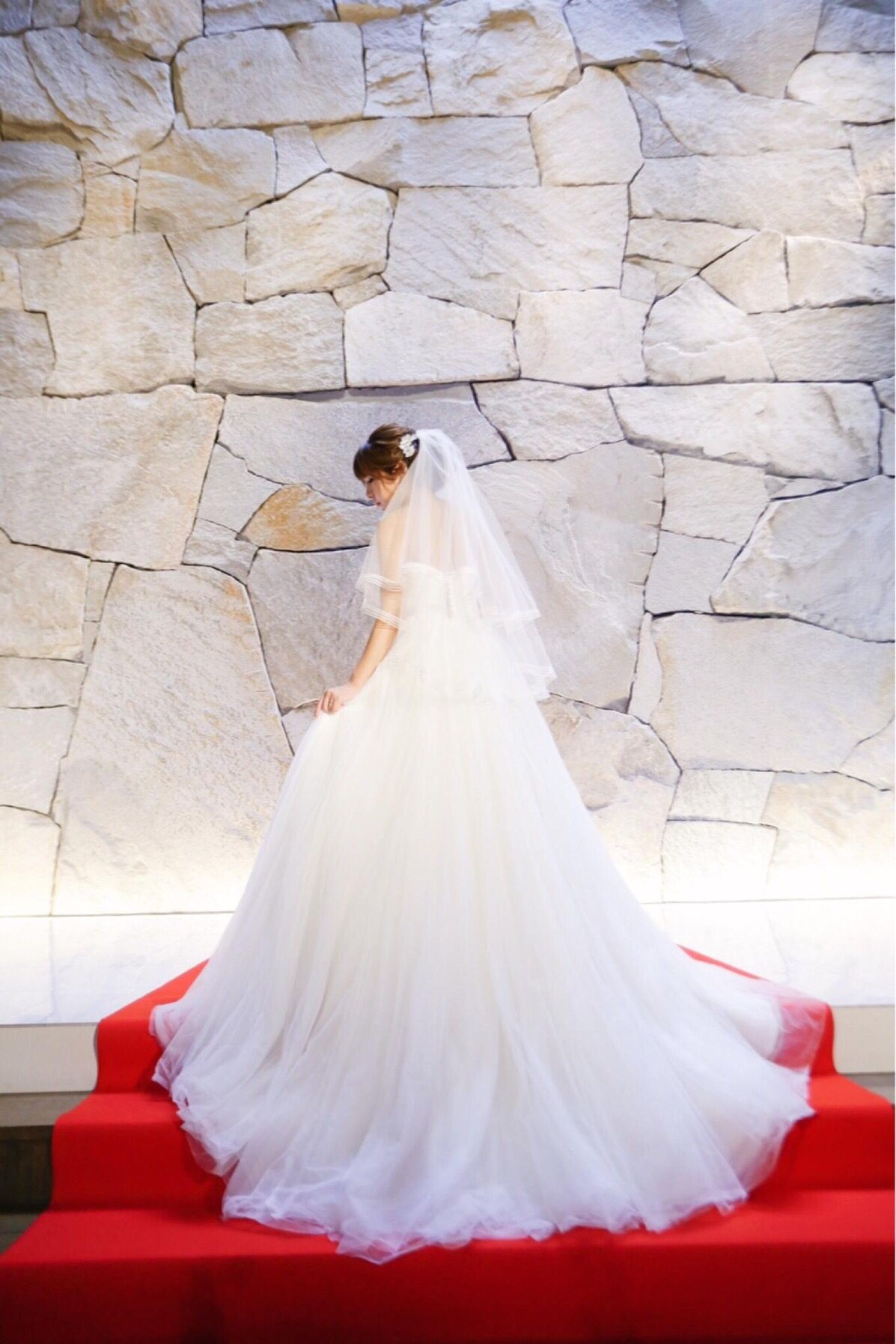 ウエディングドレスはナチュラルなものと決めていたので、このドレスはナチュラルの中に光に反射する加工がとても可愛く、無駄なアクセサリーは付けずシンプルに着ました。