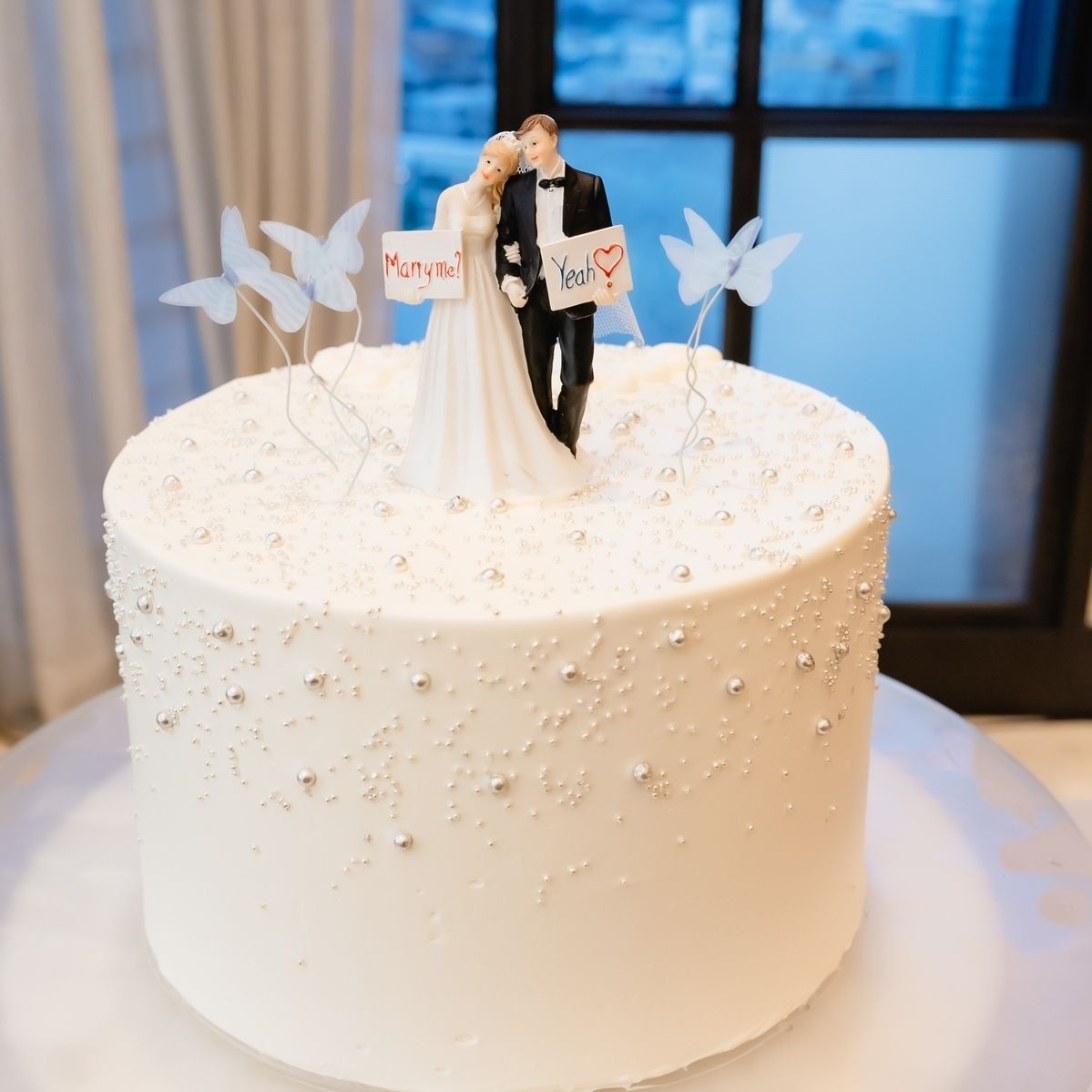 トッパーは新郎新婦のモチーフと蝶々で飾り付けました。一段でも存在感があり気に入っています。