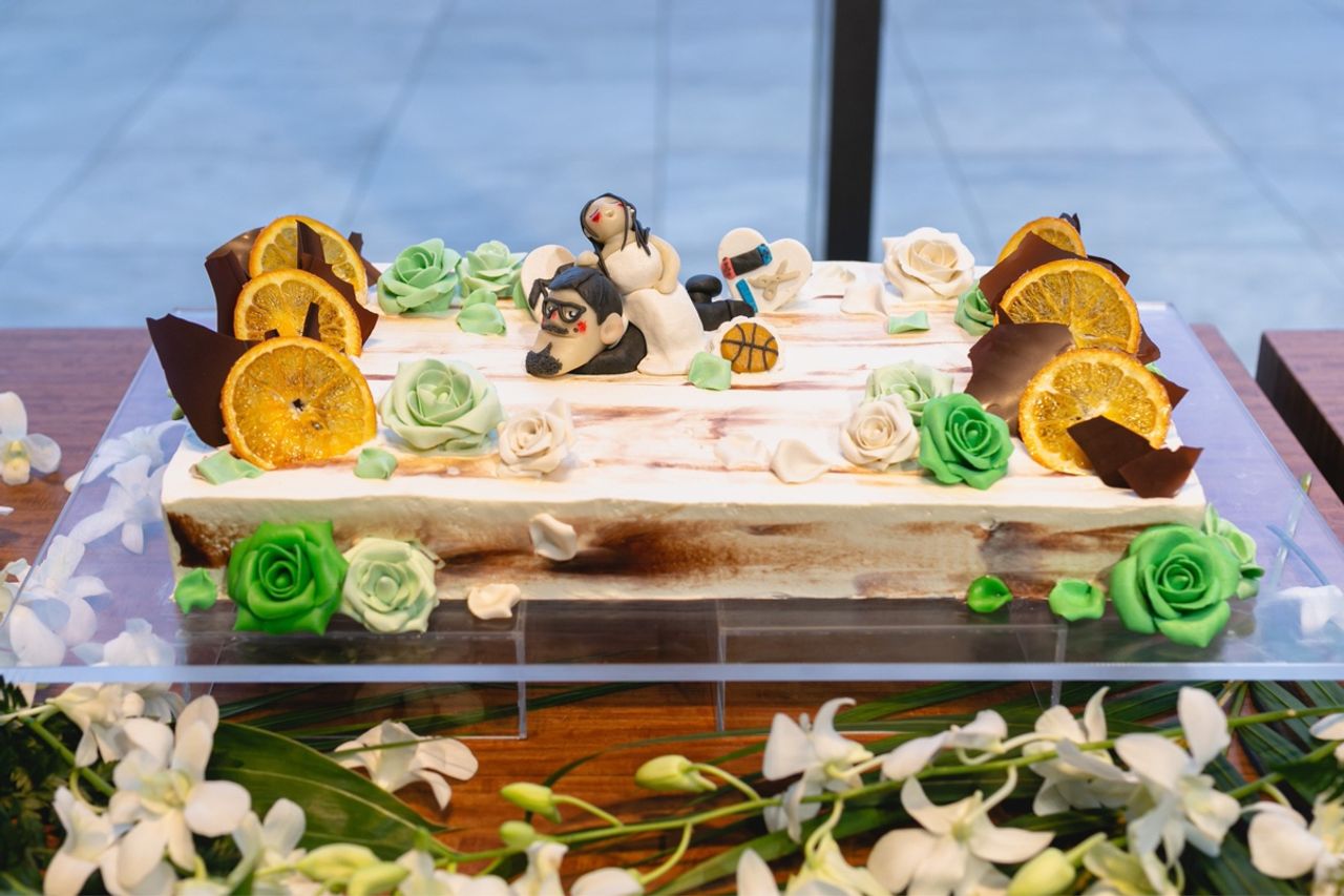 弟がパティシエをしているので、マジパン装飾をお願いしました。新郎新婦そっくりの人形を作ってくれて、ゲストに大好評でした。何人もの友人から、ケーキのアップ写真が送られてきたほどです。