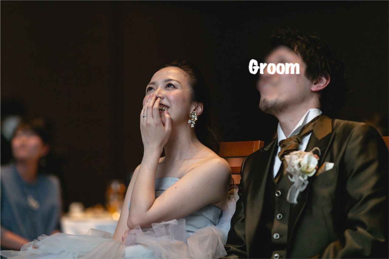 余興は、高校時代の友人たちが引き受けてくれました。ムービーを作ってくれていたんですが、私の実家に行って、撮影した内容もあり本当に驚きました。両親とも仲良くしてくれて、ムービーの編集技術もすごかったです。会場が大爆笑に包まれてました。