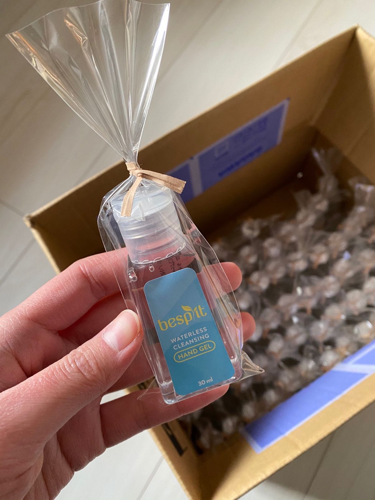 アルコールジェルを準備し、ラッピングしてお渡ししました。