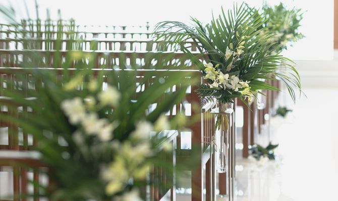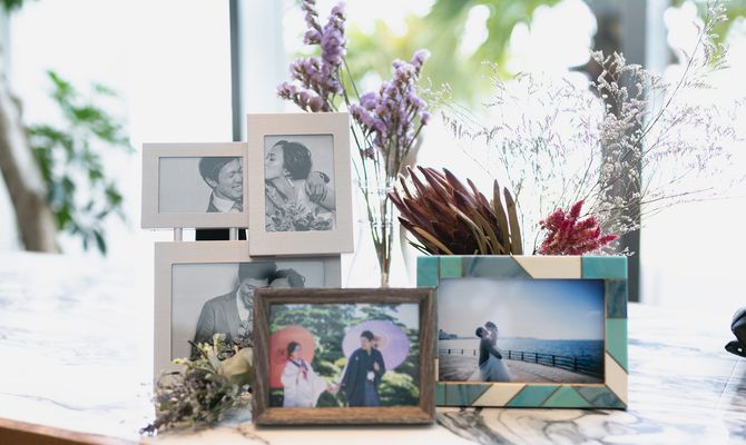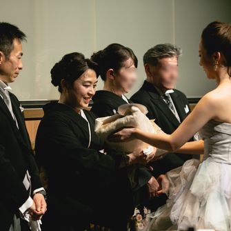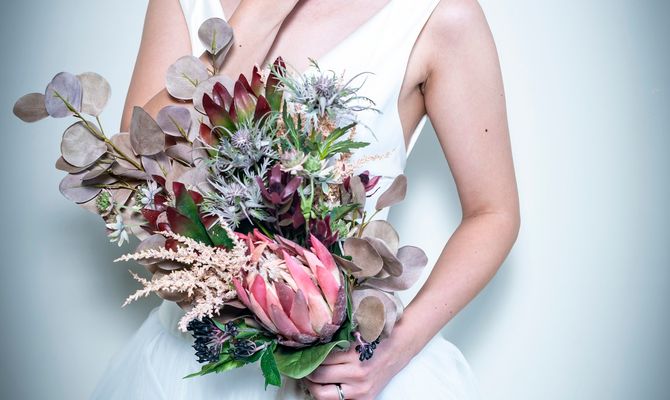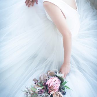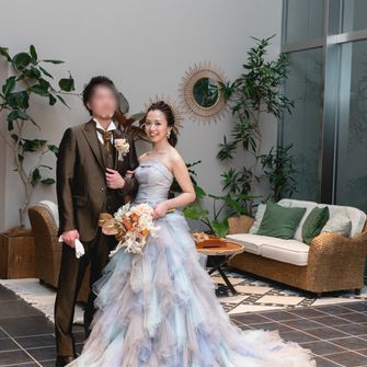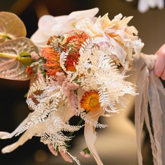 遠方のゲストは装花の持ち帰りが大変なので、なるべく持ち帰る荷物を少なくしたいというのが、私たちの想いでした。ドライフラワーのブーケは、女性ゲストはもちろん、男性ゲストも意外と喜んでくれて、ブートニアにしてくれた方もいらっしゃいました。