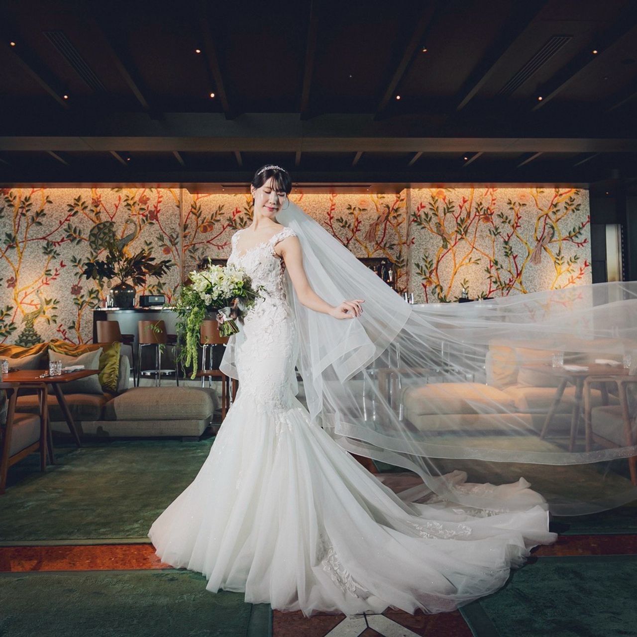 Instagramでオクサーナムハのマーメイドドレスを見て一目惚れし「絶対にこれが着たい!」と心に決めていました。挙式準備が妊娠中だったため、産後の体型で改めてフィッティング。産後3ヶ月で体型が戻せるか心配でしたが、無事に着られました。