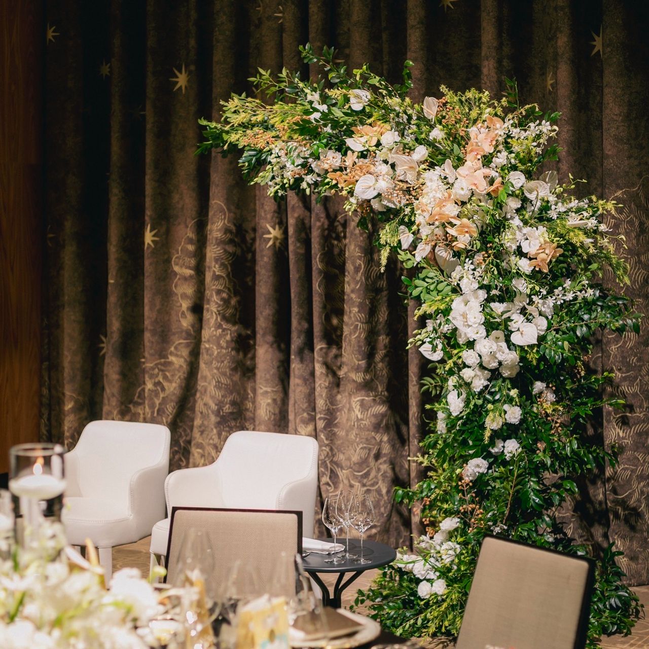 アンスリウムや胡蝶蘭が好きだったため、至る所に散りばめていただきました。