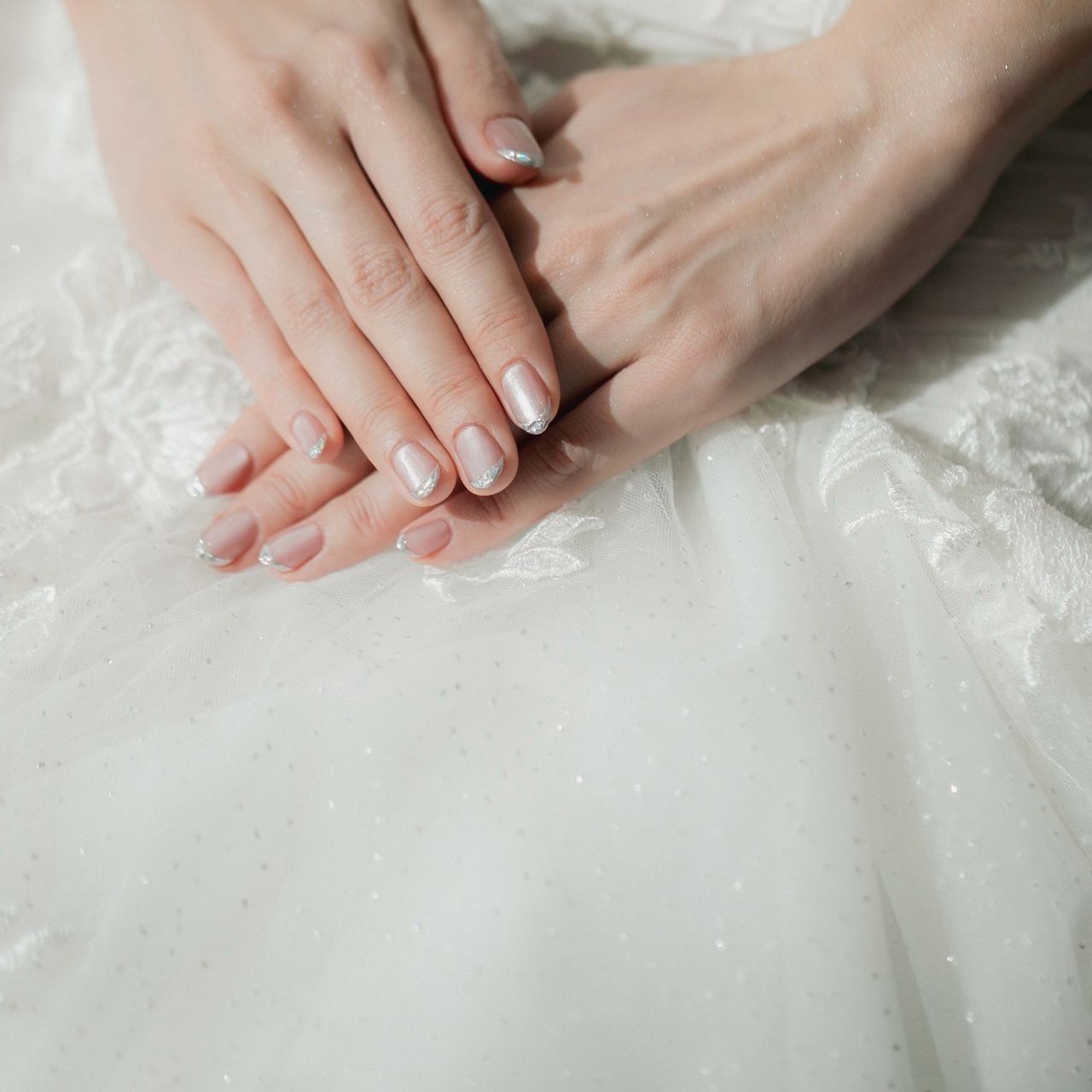 根元はマグネットネイルにして、照明でキラキラするようにしました。パーツはつけずシンプルにしていただきました。