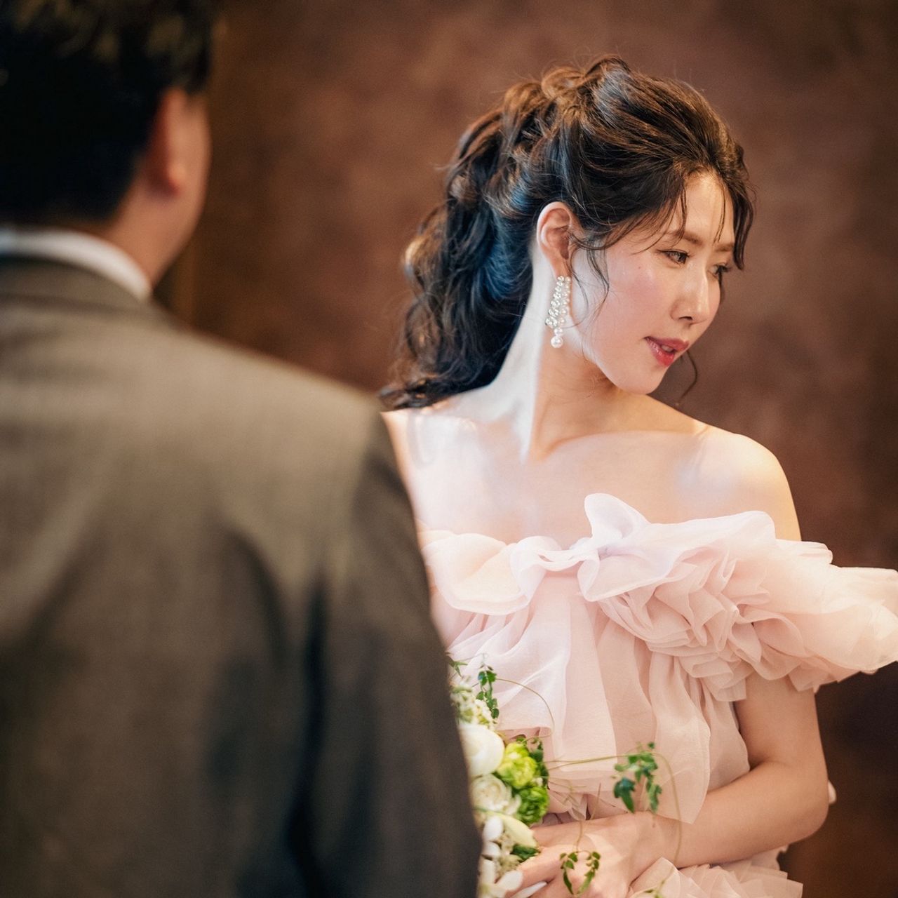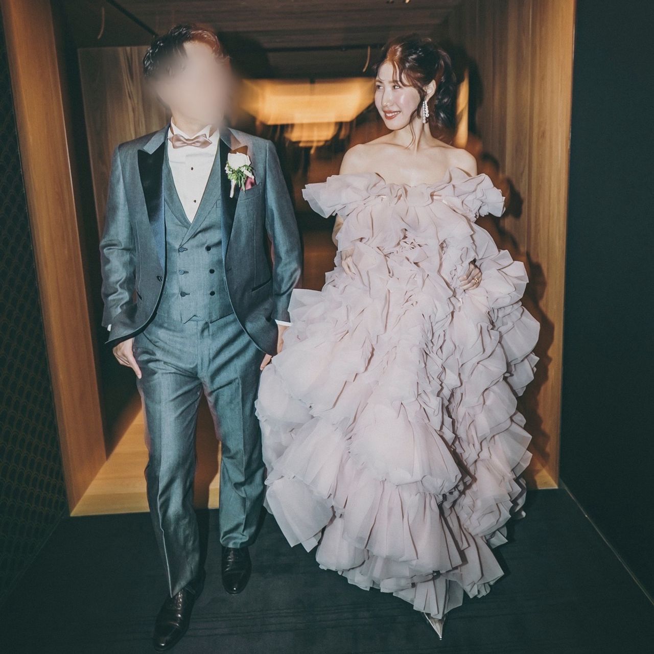 1.2着目がマーメイドドレスでタイトなシルエットだったので、ギャップが出るようにボリュームのある可愛らしいドレスを選びました。