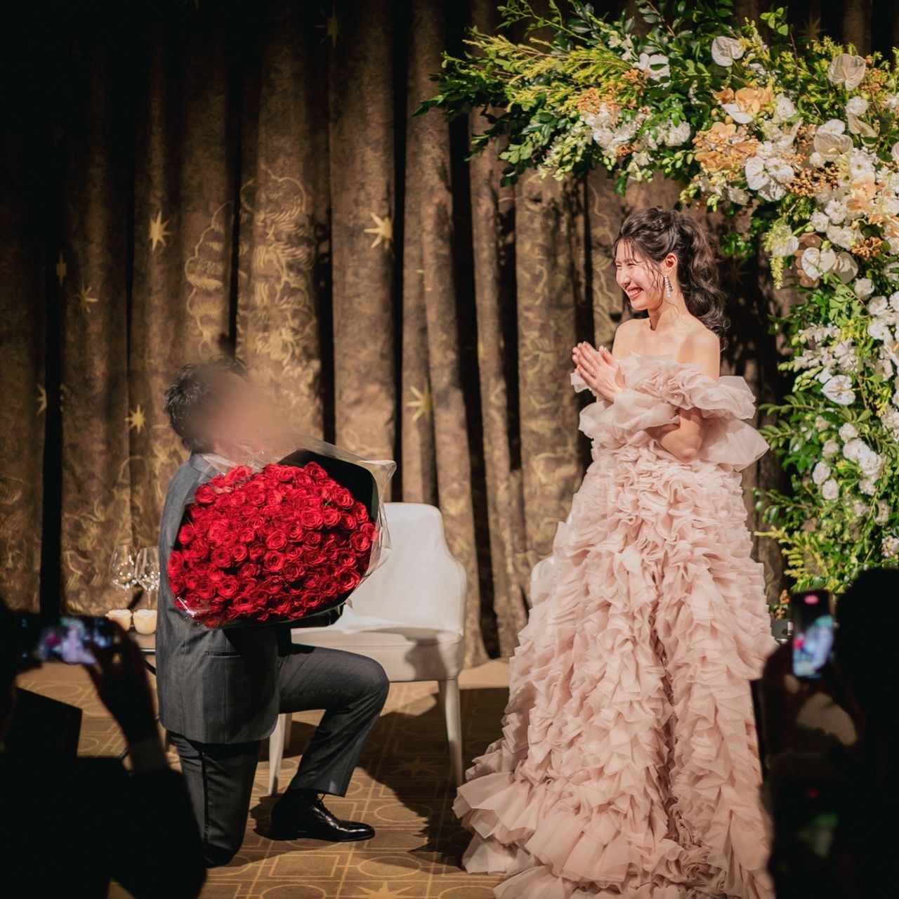 夫がサプライズで108本のバラを用意してプロポーズしてくれました。