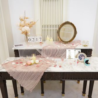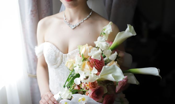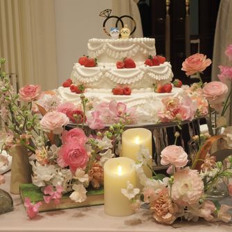 装飾テーマ『大人かわいい×jewelry』会場は大好きなピンク×ホワイトでフェミニンドレスは甘すぎない綺麗めな印象にコンセプト『ゲストと作る結婚式』おもてなしを意識し、ゲスト参加の演出を入れてなるべく多くの方に役割をもってもらいました