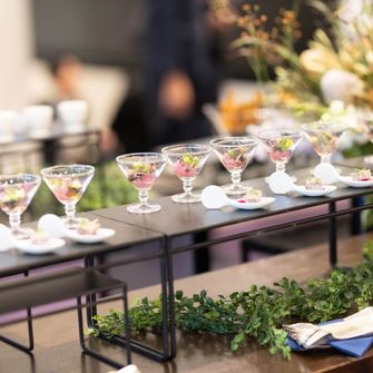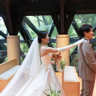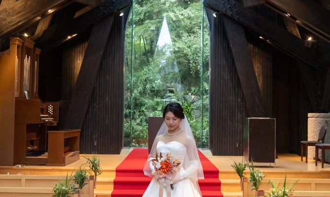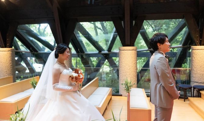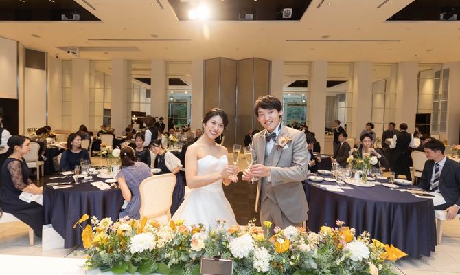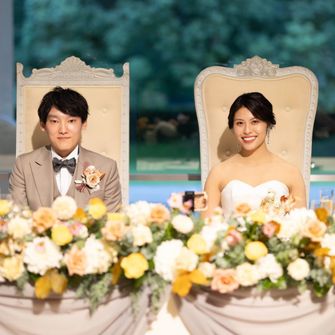 遠方からのゲストが多いため「おもてなし」をコンセプトに、カジュアルに楽しんでもらえるようにしました。迎賓館は1日2組と限定のため、他の組のゲストを気にする事なく広い会場を貸切で使うことが出来るのが良かったです。また、周囲は緑に囲まれており、日々の喧騒を忘れられる自然溢れる空間だったことも迎賓館を選んだポイントです。