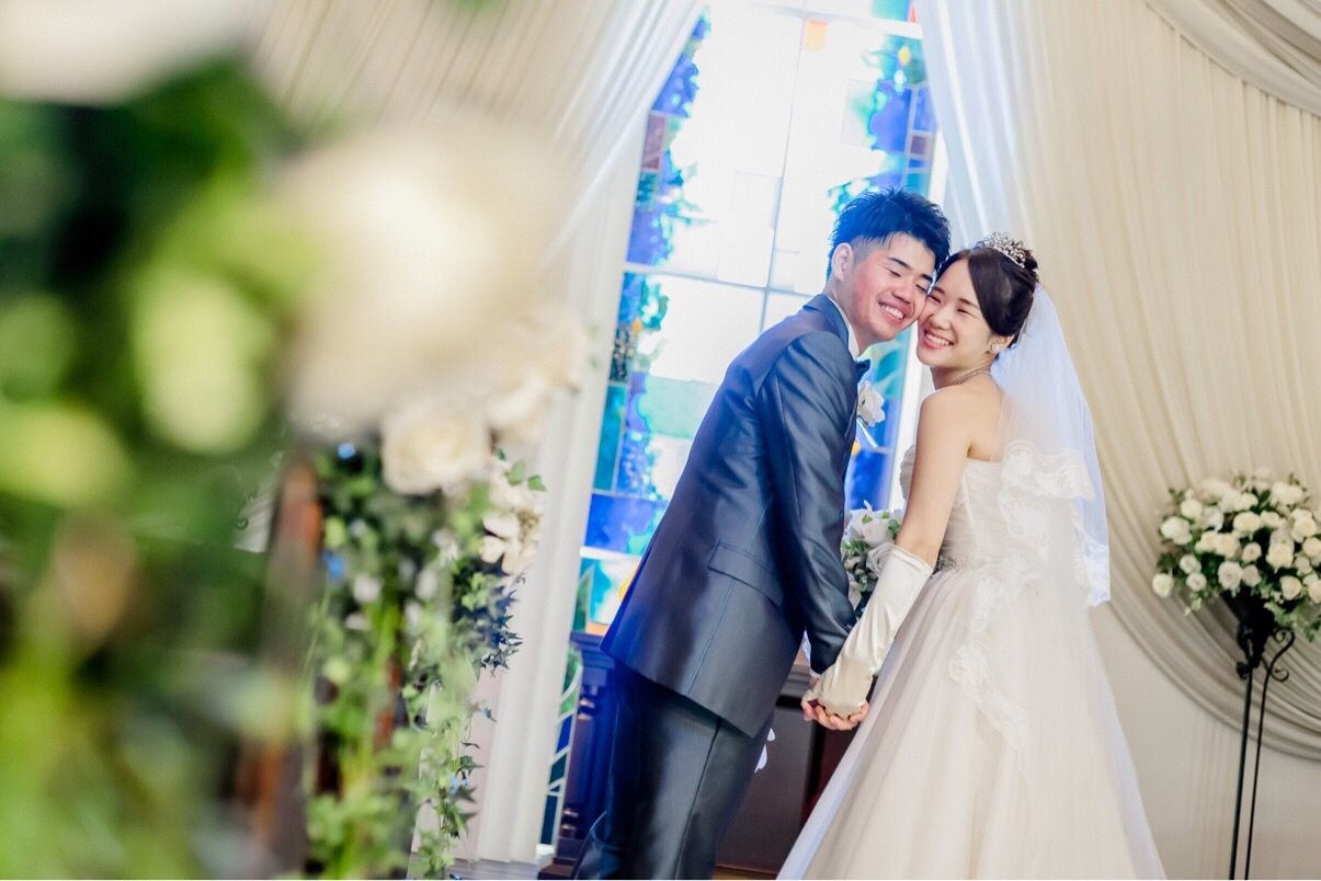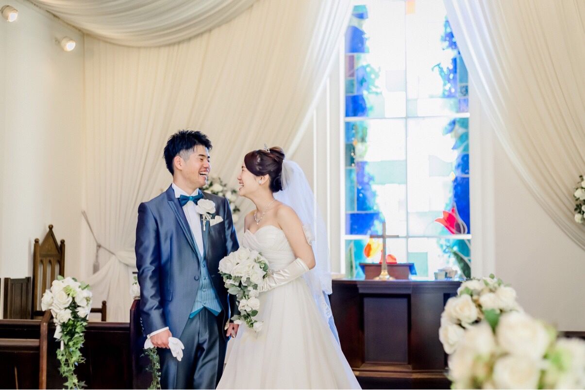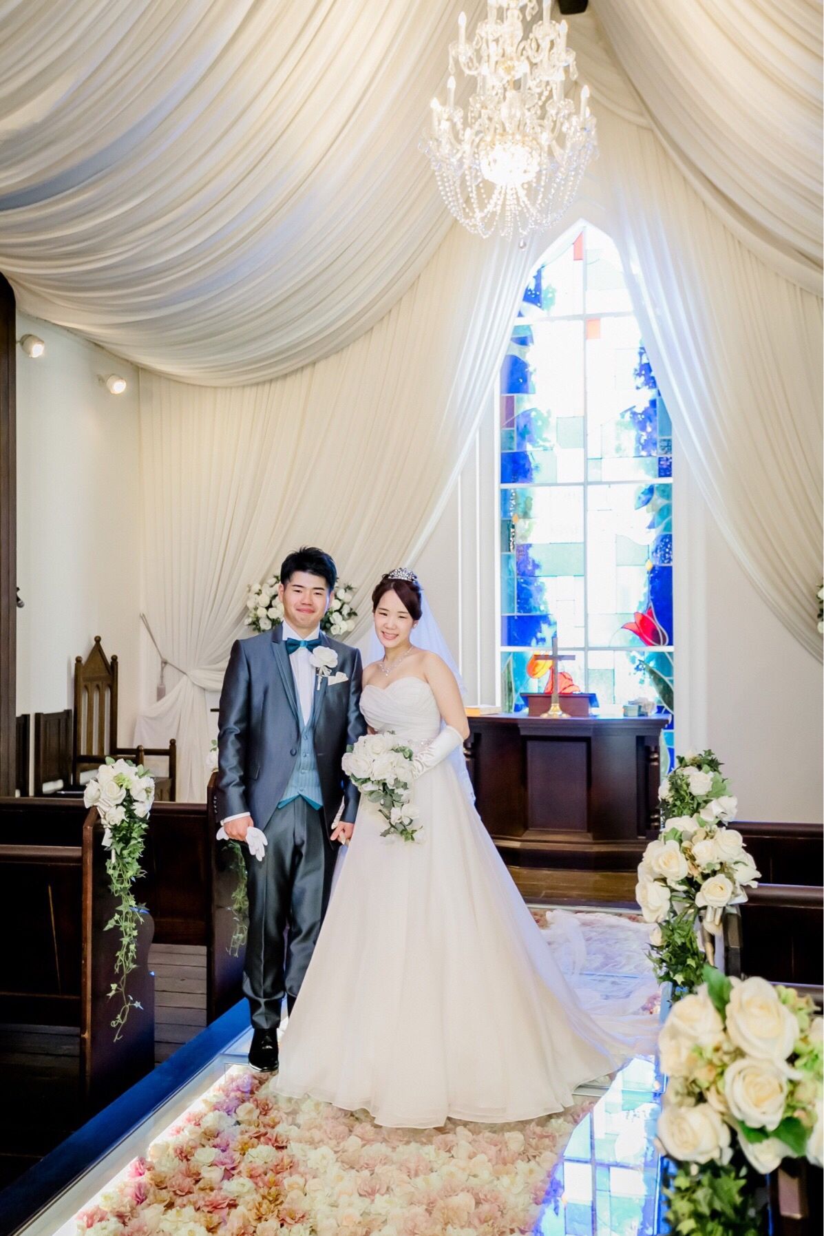 バージンロードがガラス張りで、下にお花が敷き詰めている式場にこだわりました。