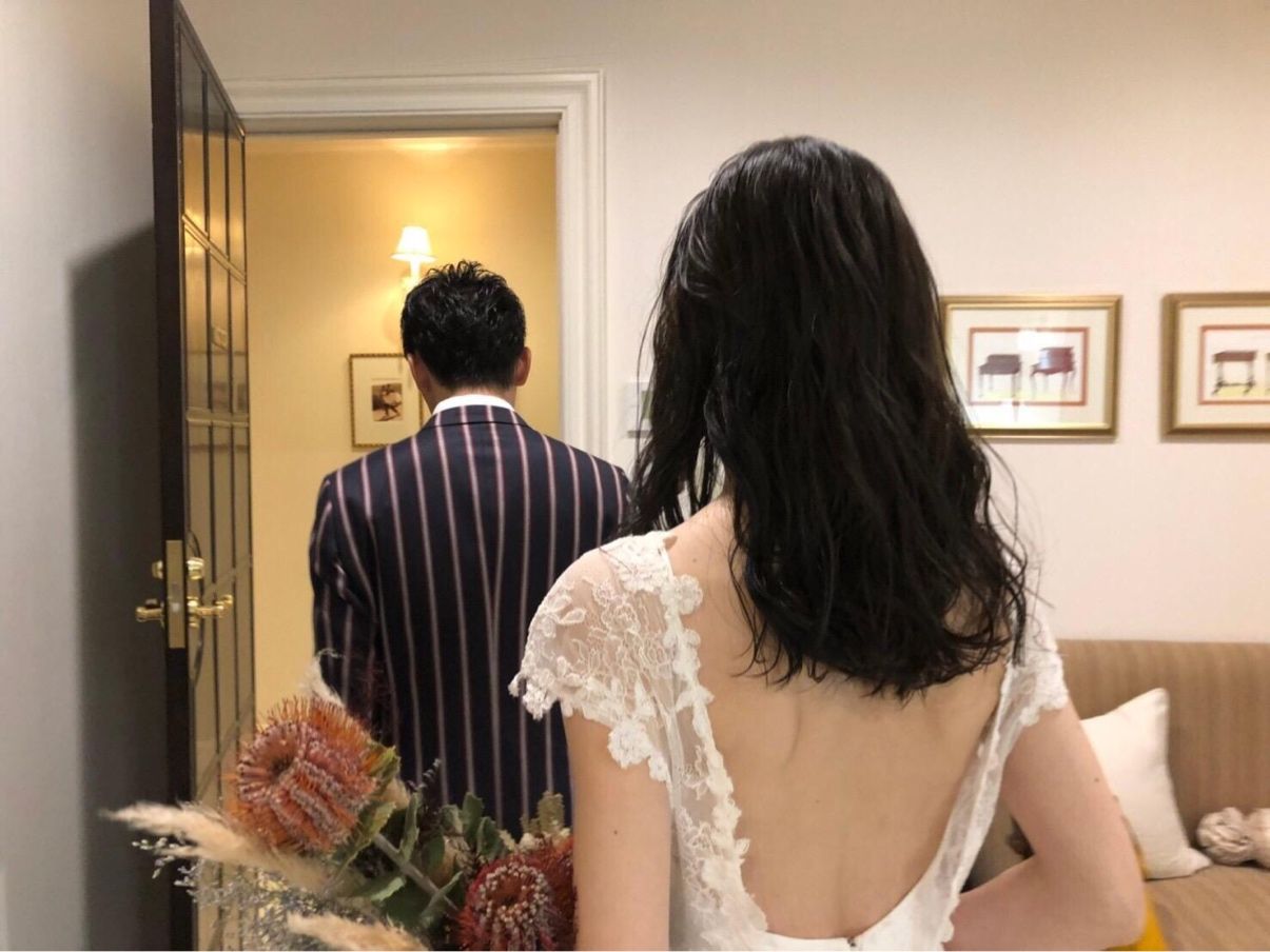 可愛い系というよりも洗練された美しいドレスを希望しており、日本の着物をイメージしたバックスタイルもとても気に入り、このドレスに決めました。