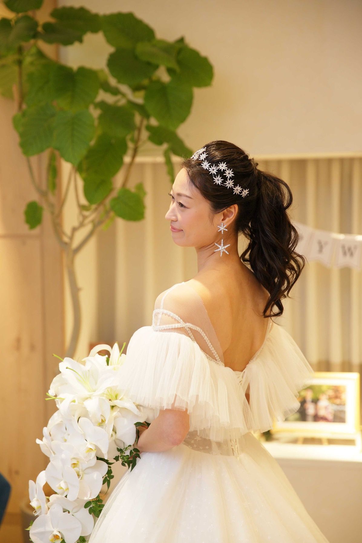 披露宴:星のヘッドピースをカチューシャ風にオン