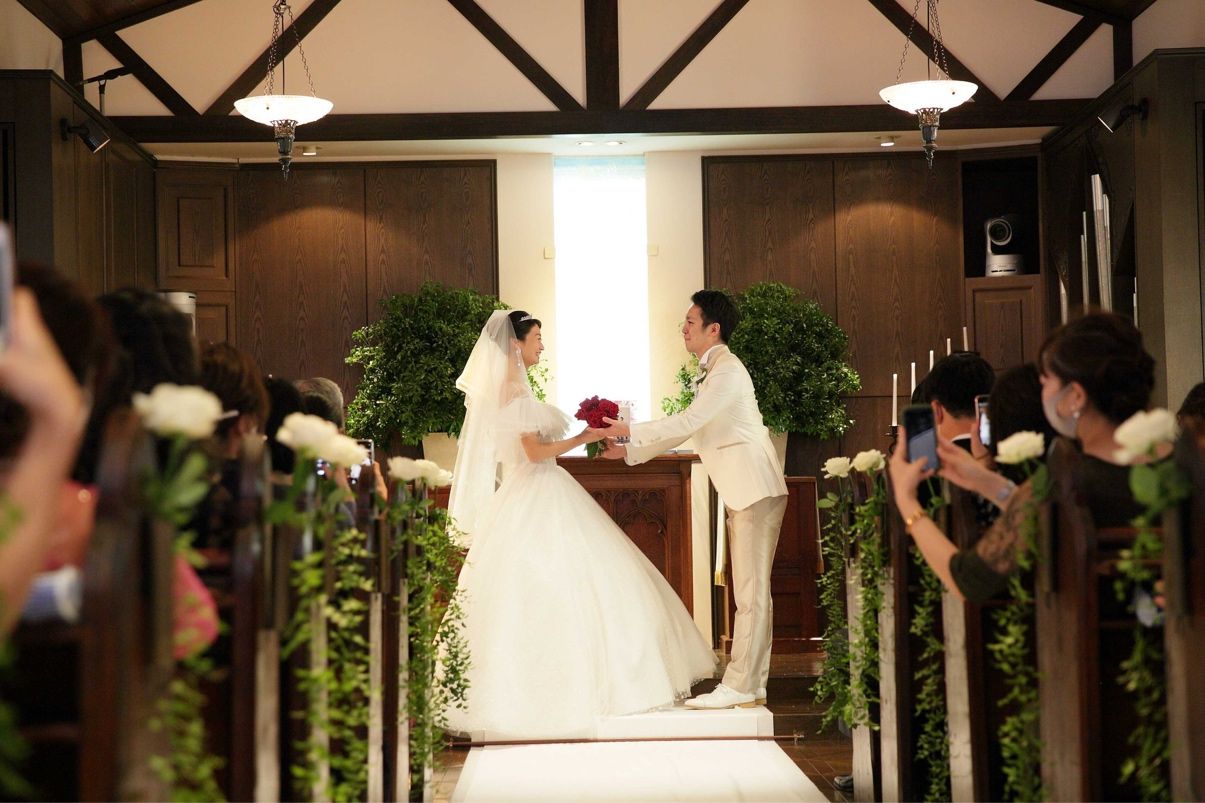 クラシカルな教会に本物のパイプオルガンがあり、こじんまりしたサイズ感なのでゲストと距離が近い点がオススメです。