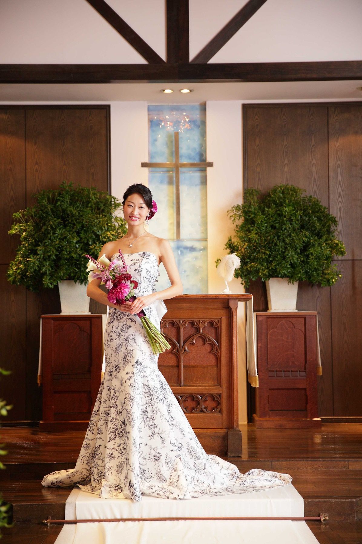 マーメイドドレスに憧れがあったのですが、なかなか似合うものがありませんでした。そんな時たどり着いたのがメリーマリーさんでした。珍しいボタニカル柄に惹かれこちらのドレスにしました。