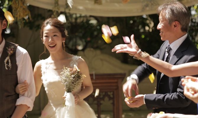 ガーデンウエディング。古い世界地図をウエルカムスペースや挙式に取り入れました。主人がプロフィールムービーなどを作成しています。良ければ見てください。https://tarofilm.com