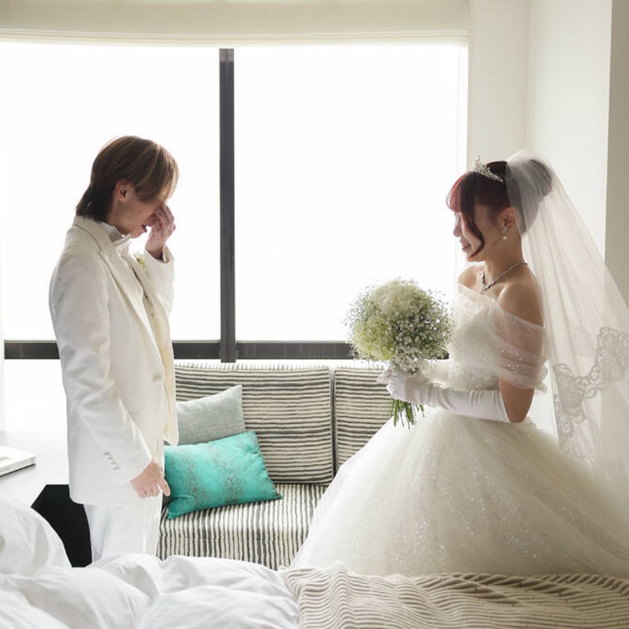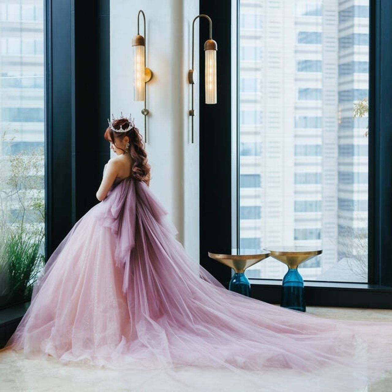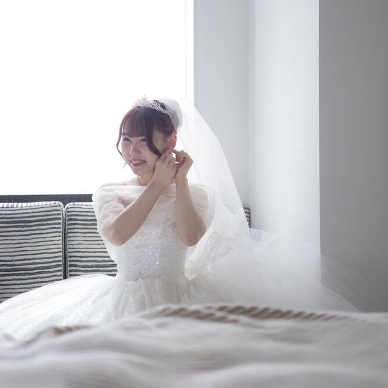 ウェディングドレスでは憧れだったティアラを...