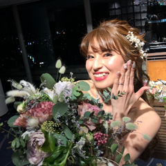 髪型はシニヨンでまとめてもらったのと、披露宴ではラプンツェルヘアに生花で可愛くアレンジして頂きました。