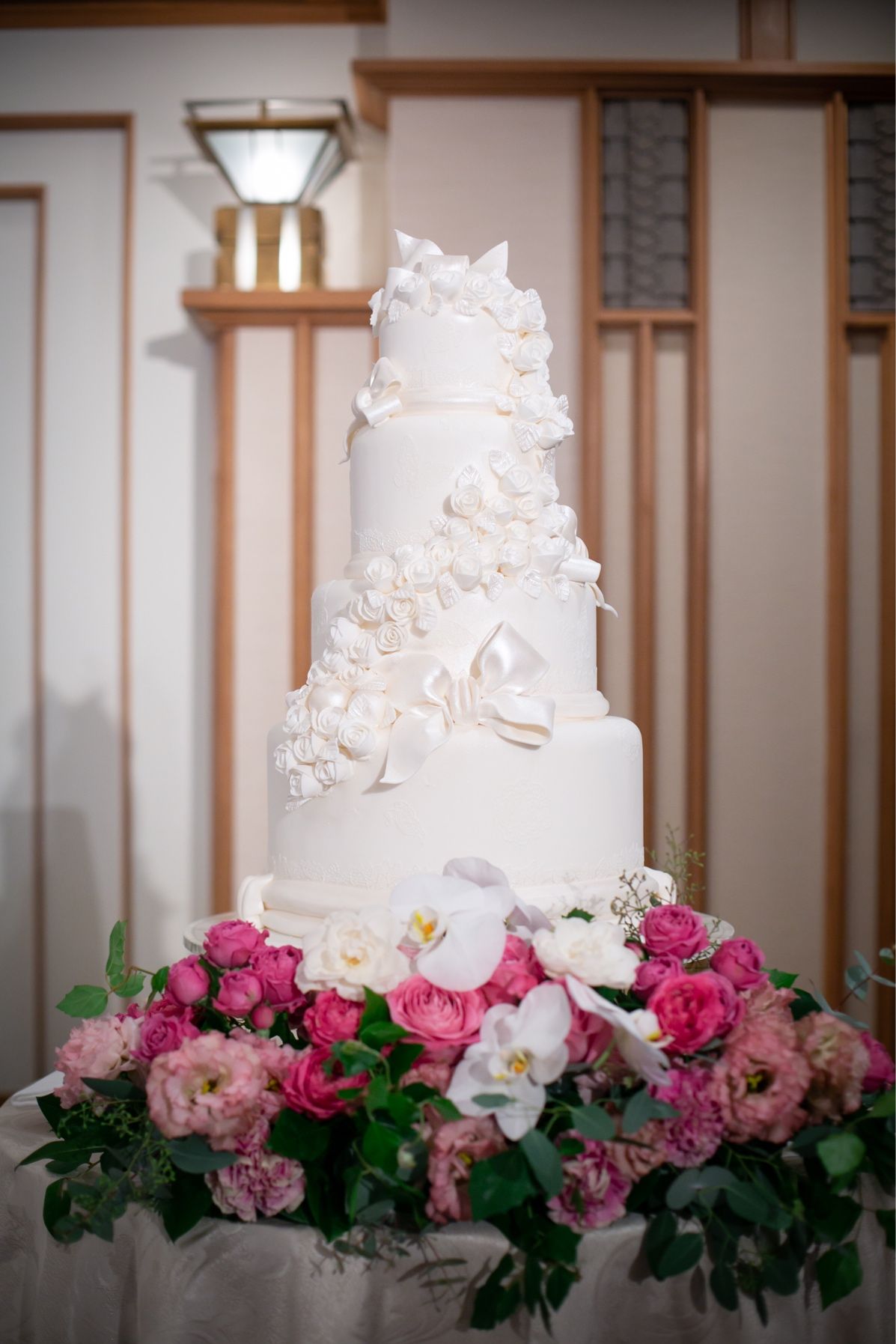 ケーキ前の装花はプラン内ですが、十分なボリュームで満足です。