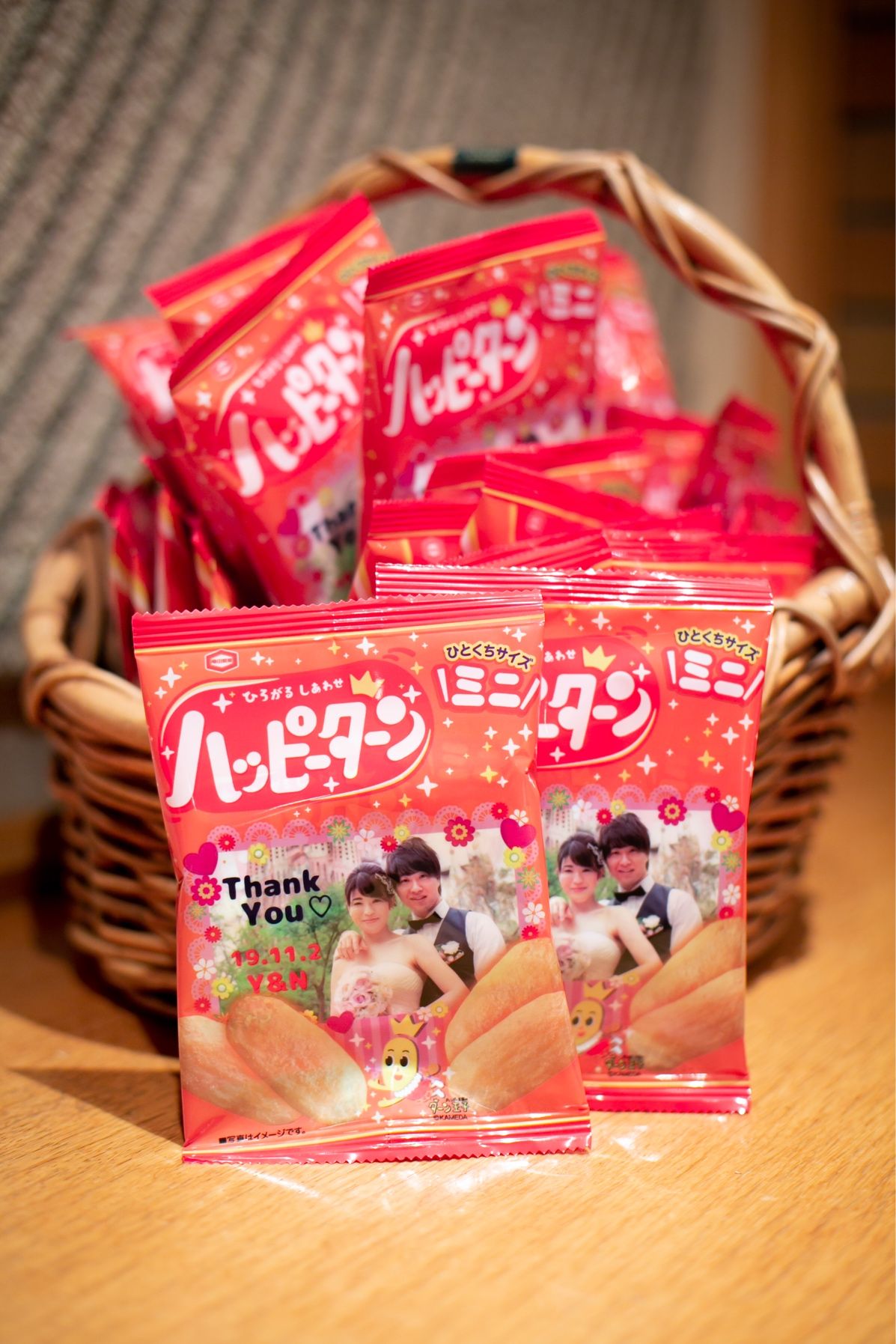 前撮り写真をパッケージにしたハッピーターンにしました。