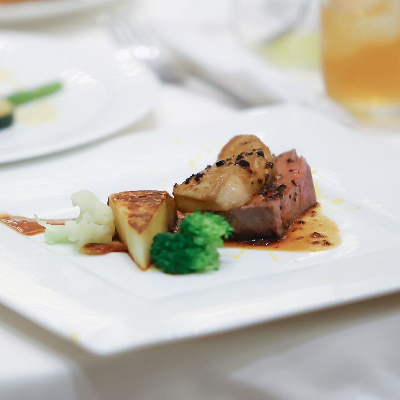 試食会でいただいたお魚料理がとても美味しく「これはぜひゲストにも食べてもらいたい」と思い、そのお魚料理が入ったコースを選びました。前菜も2種類にし、さらにゲストに喜んでもらうためデザートビュッフェもつけています。