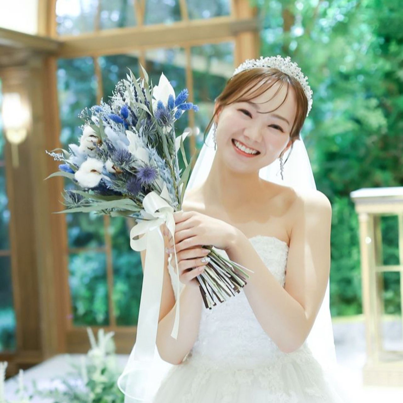 お色直しがピンクだったので、大好きな青も取り入れたくて、挙式ではブルーのブーケを、お色直しではピンクのブーケを用意しました。
