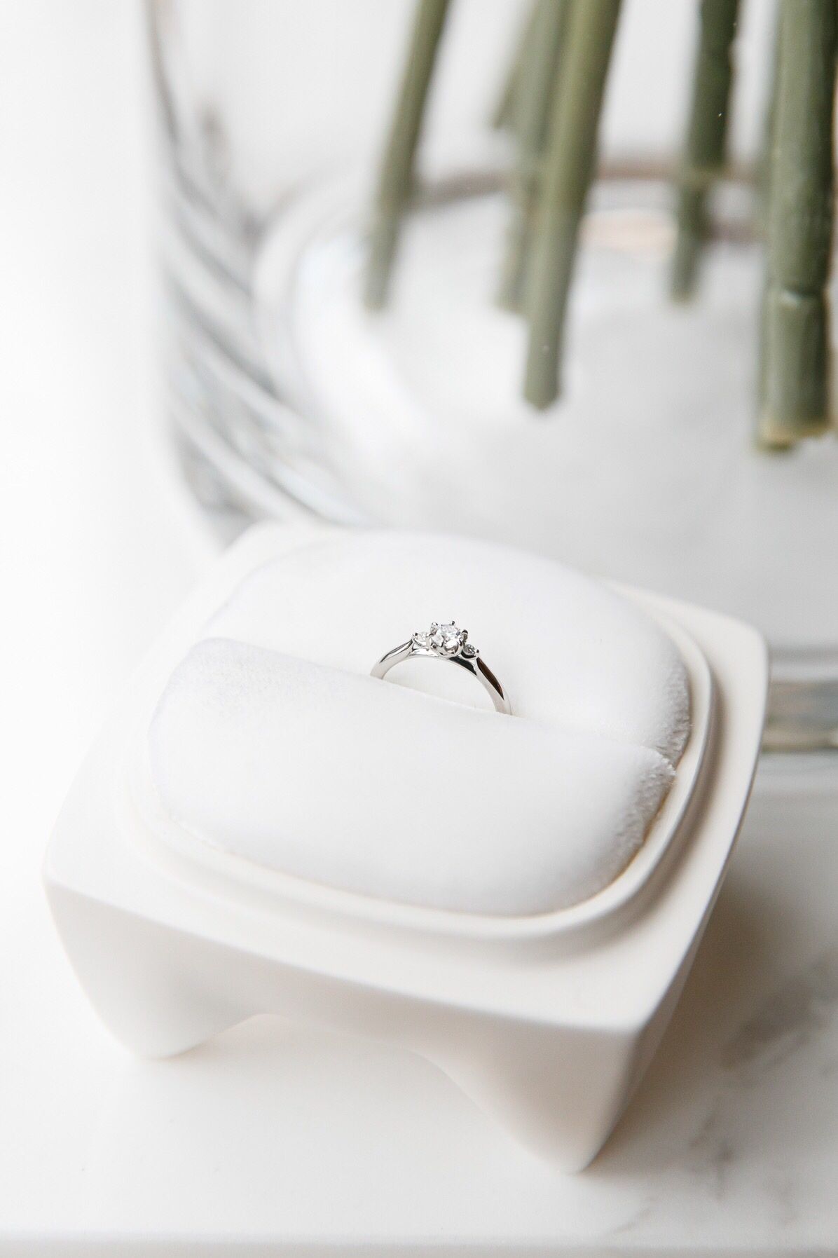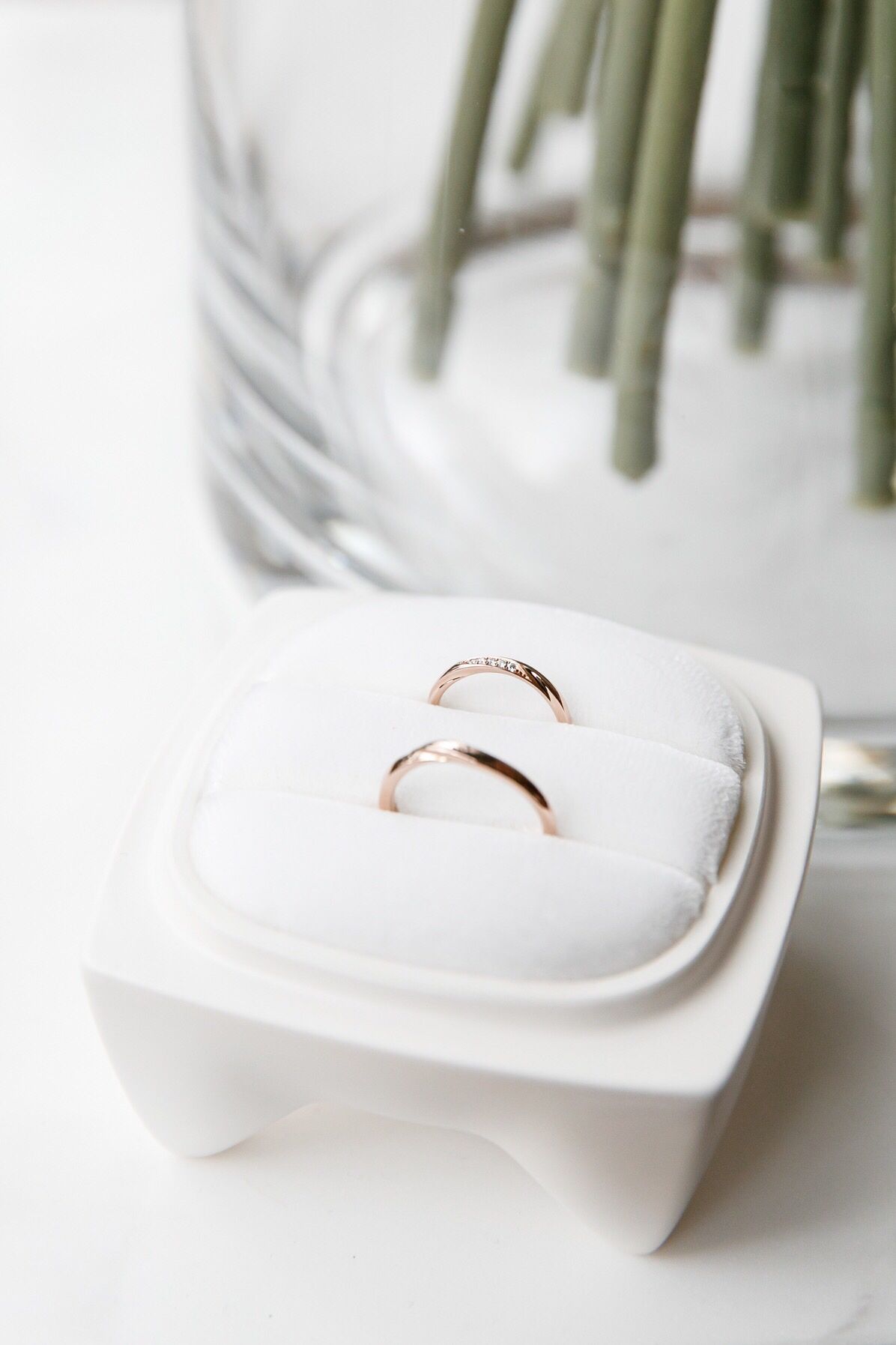 お互いに似合うデザインにしようとなり、色で揃えました。肌馴染みを考え、色はピンクゴールドにしました。