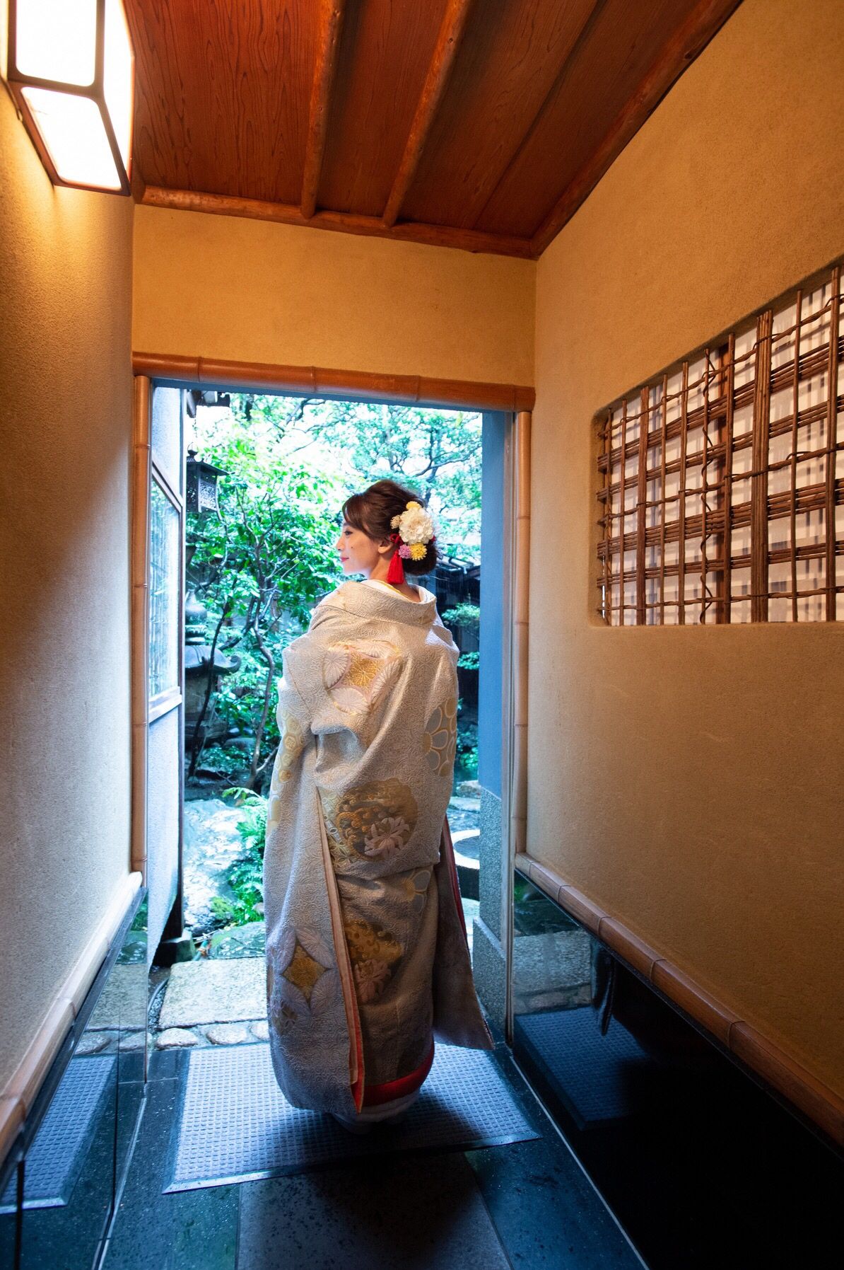 白無垢のときはつるんとした下めシニヨンで上品に。 色打ち掛けのときはふわふわとしたシニヨンで華やかに。髪の毛は艶感が出るよるように暗めの色に。