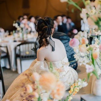 テーマは「ゲストと近い、アットホームな結婚式」です。参列者の半分以上が新郎新婦の友人であり、職場の上司はどちらも招待していなかったため、友人たちと近くで笑って楽しめるような結婚式にしたいと思いました。ザ・ガーデンオリエンタル大阪の決め手は、披露宴会場が参列者と近かったこと、緑がたくさんある式場が良かったことです。2人のイメージにピッタリでした。
