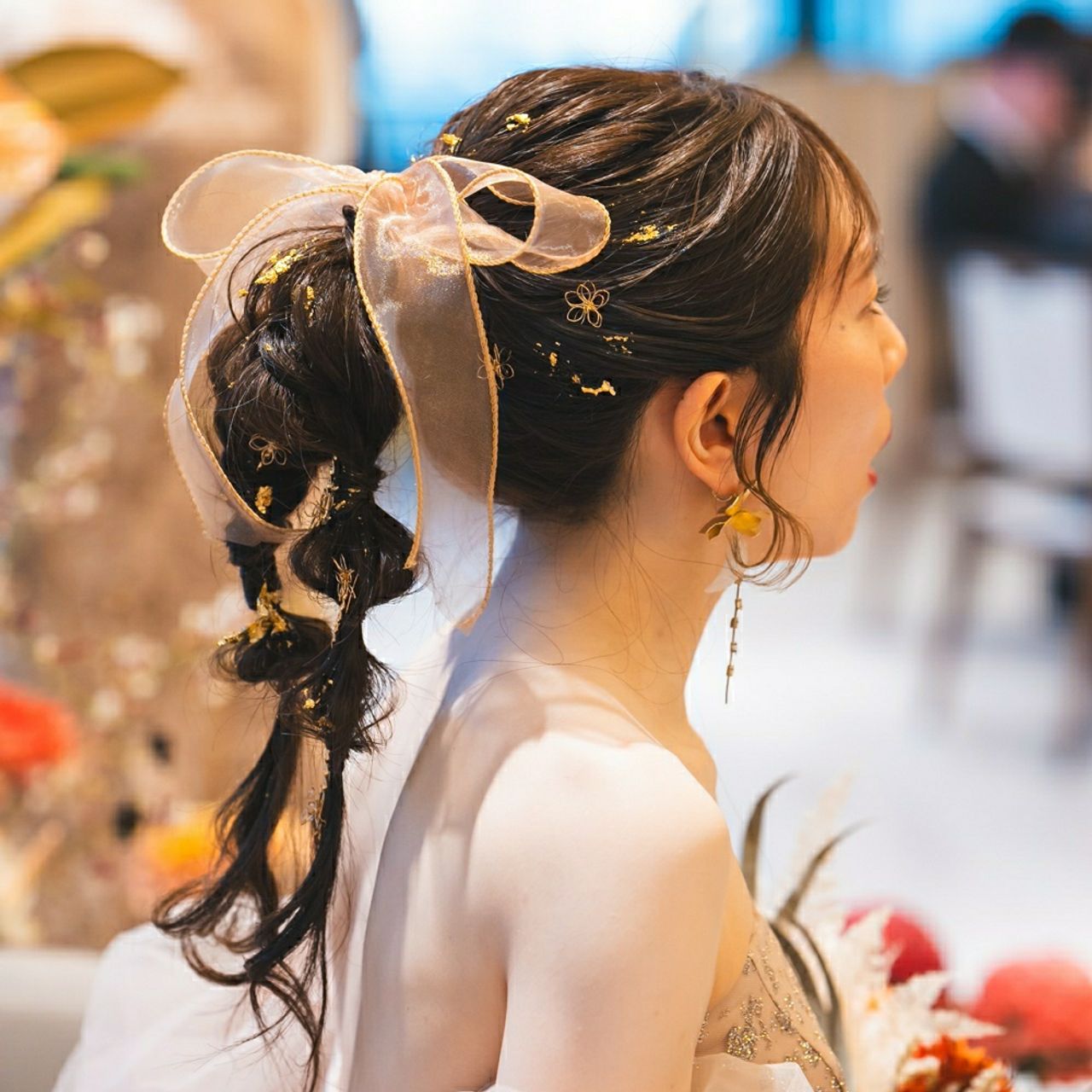 お色直し:絶対に金箔を使いたかったので、両サイドと全体に金箔を付けてもらっています。