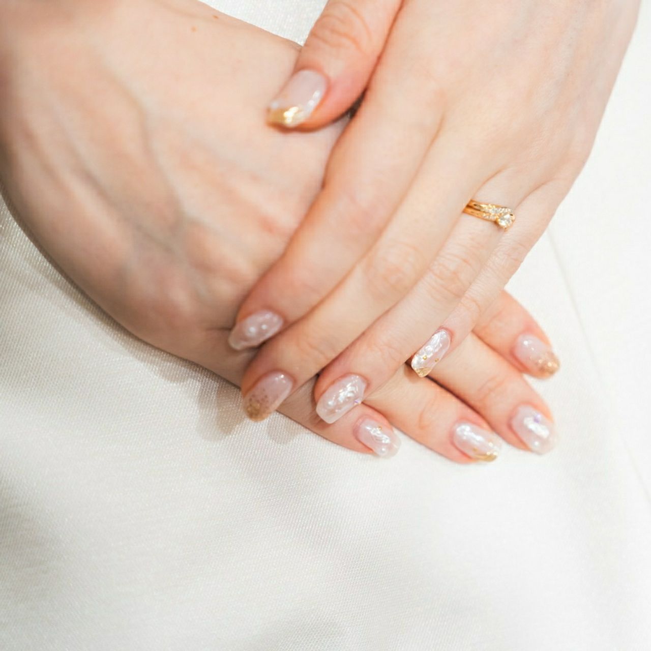 花嫁と言えば!な感じにしたかったので、白ベースのミラーネイルです。
