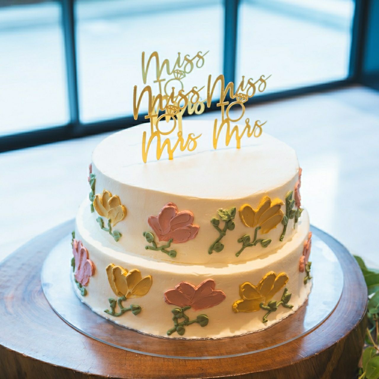 シンプルなものにしたかったのと、式場のInstagramで見つけたケーキのデザインがとても可愛かったので、そちらを参考にして作ってもらいました。