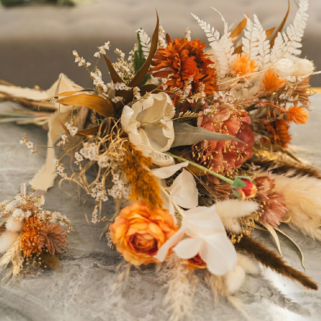 ブーケは式場に頼むと生花なのでかなり高額でしたが、持ち込み無料ということもありアーティフィシャルフラワーを外注して持ち込んでいます。