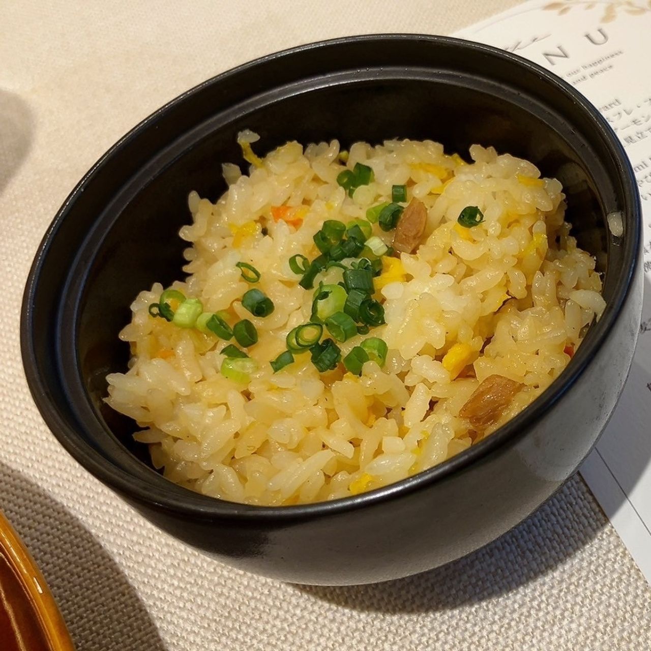品数を見たり、試食会で試食をして男性は少し足りないかもと思い、オプションでチャーハンをつけています。